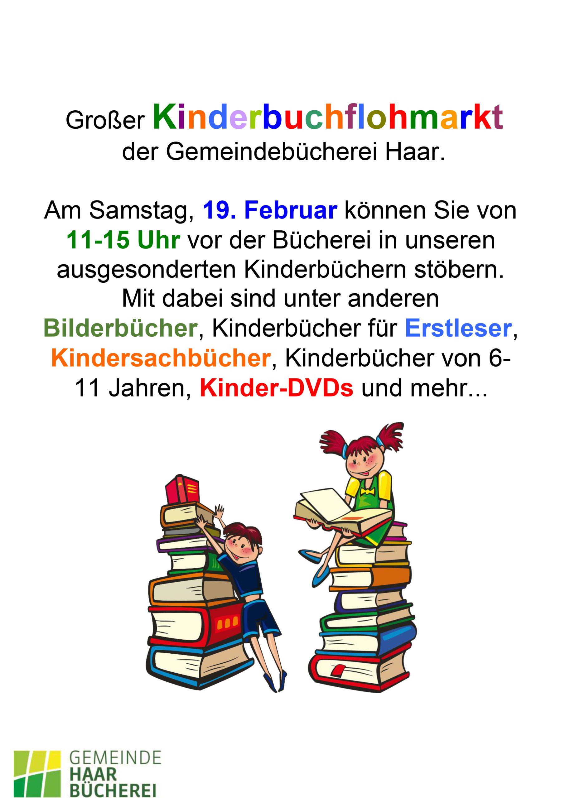 Das kennt wohl jede*r von uns: Kinderbücher kann man einfach nicht entsorgen. Genau so geht es auch der Gemeindebücherei Haar. Und deswegen bietet das Team am 19. Februar von 11 bis 15 Uhr kistenweise Lektüre für Kinder zum Kauf auf einem Kinderbuch-Flohmarkt an. 50 Cent wird dabei jedes Buch kosten und die Veranstaltung findet coronakonform vor der Bücherei in der Leibstraße 25 statt. Auf dass die von der Bücherei ausrangierten Geschichten noch viele Kinder erfreuen mögen…