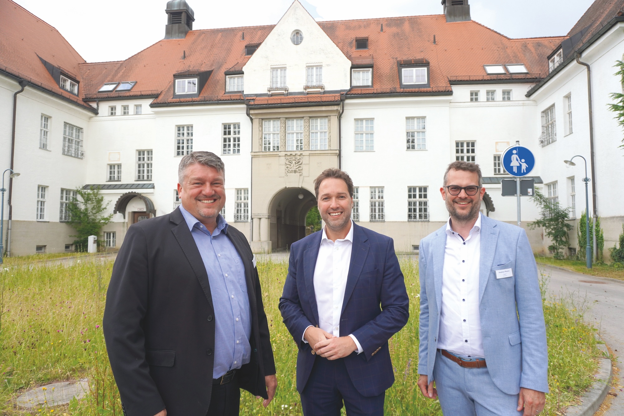 Wollen ansprechbar für die unmittelbare Nachbarschaft sein: Daniel Fischer (l.) und Stephan Pflumm (r.), Geschäftsführer Phoenix Living mit Bürgermeister Andreas Bukowski.