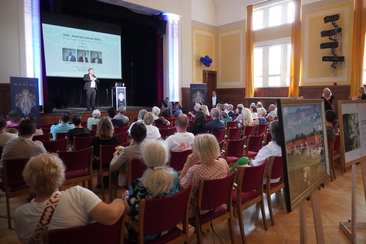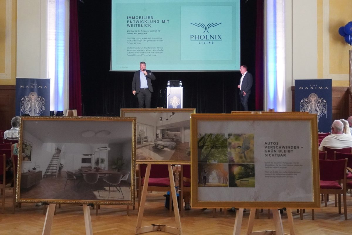 Seit einigen Wochen passiert etwas am und rund um das Zentralgebäude der „VILLA MAXIMA“ im Jugendstilpark. Holzverkleidungen um Bäume und Zäune machen die Veränderungen deutlich sichtbar. „Wir wollen das Gebäude komplett kernsanieren und im Anschluss Wohnungen hineinbauen in der Größenordnung Zwei- bis Sechszimmerwohnungen“, erklärt Daniel Fischer, Geschäftsführer der Phoenix Living auf der offenen Veranstaltung „Nachbarschaft verbindet“ im Kleinen Theater Haar.
