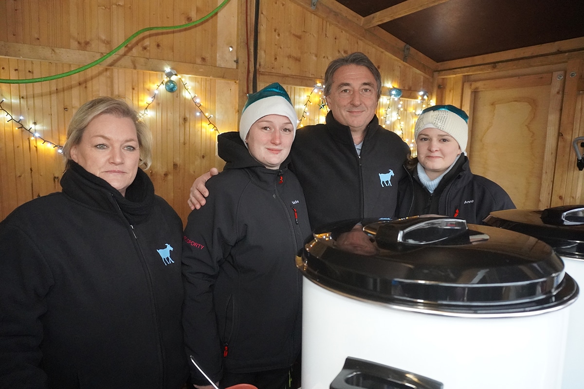 Es kommt immer auf den persönlichen Geschmack an – egal, ob es um etwas für den Bauch oder für das Auge geht. Joshua, Julian und Tobias aus der Jagfeldschule stehen in einer Bude und taxieren Kaufinteressenten genau, um ihnen dann aus dem Warenangebot, das von selbstgemachten Plätzchen bis zu Selbstgebastelten das Passende vorzuschlagen: „Wie wäre es mit einer schönen Kerze?“, fragt Joshua und blickt potentielle Kunden mit unschuldigen großen, braunen Kulleraugen direkt an. Schnell gesellen sich seine Kumpel dazu. Ein weiteres paar braune und ein blau-graues Paar, ebenso unschuldig versteht sich, fixieren den inzwischen willigen Käufer. Alle drei Buben lächeln schelmisch unter ihren Nikolausmützen, wohlwissend: Wohl kaum jemand kann den Blicken des Trios widerstehen. „Ich finde es einfach super, dass ich hier am Stand von meiner Schule helfen darf zu verkaufen. Das macht mega Spaß. Ich verkaufe hier die Sachen, die meine Mitschüler gebastelt und gewerkelt haben“, erklärt Joshua. Mama und Haars dritte Bürgermeisterin Katharina Dworzak (SPD) kommentiert das geballte Verkaufstalent der Gang lachend: „Das haben die wirklich marketingtechnisch richtig gut drauf.“