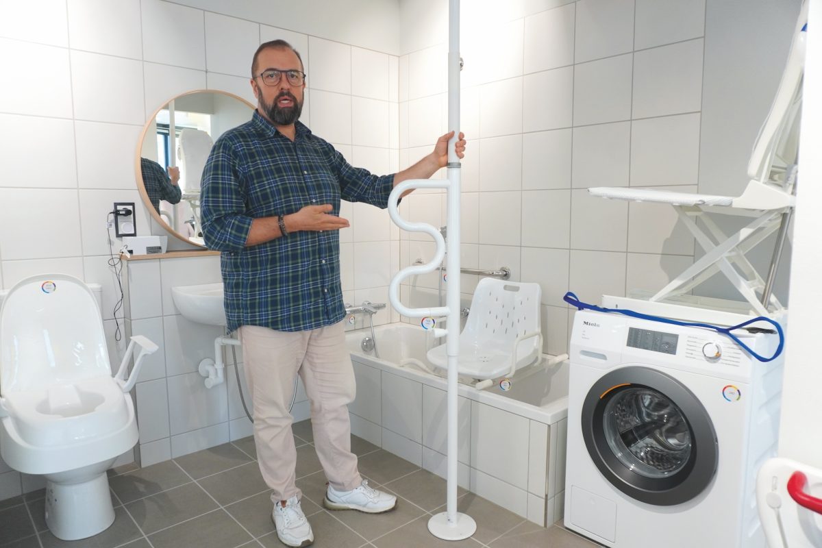 Eine kostenfreie, professionelle Beratung für Senioren bietet das Kompetenzzentrum Barrierefreies Wohnen in Riem. Es handelt sich um ein Angebot, das auch für die Haarer gilt. Wer will, kann sich im großzügigen Ausstellungsraum einen ersten Überblick unterschiedlichste Hilfsmittel zu den kritischen Wohnbereichen wie Bad, Treppen, Schlafzimmer oder Küche verschaffen. „Wir haben hier quasi eine Wohnsituation und ermutigen ausdrücklich dazu alles auszuprobieren und anzufassen“, sagt Sozialpädagoge und Wohnberater Markus Reimann. Darüber hinaus bietet das Kompetenzzentrum eine Besonderheit, die ebenfalls nichts kostet. Mitarbeiter wie Markus Reimann, kommen nach terminlicher Absprache auch nach Haar zu den Klienten, um sich vor Ort ein genaues Bild zur individuellen Problematik und den Gegebenheiten machen zu können. „Oft rufen mich die Leute an und sagen, dass sie nicht mehr in die Badewanne kommen. Vor Ort stelle ich schnell weitere Hürden fest. Nach genauer Analyse erarbeiten wir Lösungsvorschläge und Ideen.”