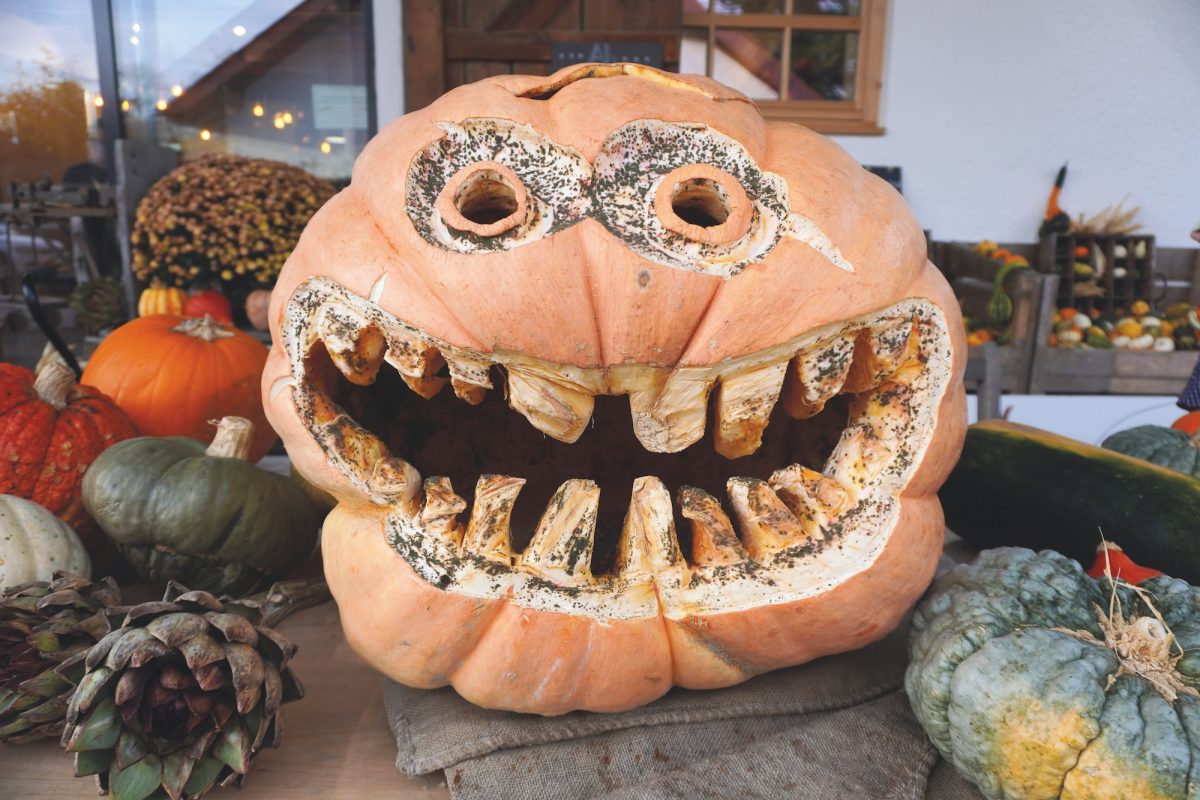 Er lacht und entblößt dabei eine beachtliche Zahl von spitzen Zähnen, deren Zustand wohl bei jedem Zahnarzt blankes Entsetzen auslösen würde. Karius und Baktus treiben ihr Unwesen und sorgen für den noch grusligeren Anblick des „Dicken“ auf dem Habecker Hof. Dorthin verschlägt es den Riesenkürbis (wie jedes Jahr von Künstler Karl Hertje geschnitzt) nach der kurzfristigen Absage seines großen Auftritts im Innenhof des Poststadels. Die außerordentlich trüben und sehr nassen Aussichten zerstören jede Hoffnung auf gemeinschaftliches Schnitzen und Schauern: „Es war leider nichts zu machen, aber wir konnten unser traditionelles Kürbisschnitzen nicht feiern “, bedauert die stellvertretende Vorsitzende von hand in hand in Haar Ute Dechent.