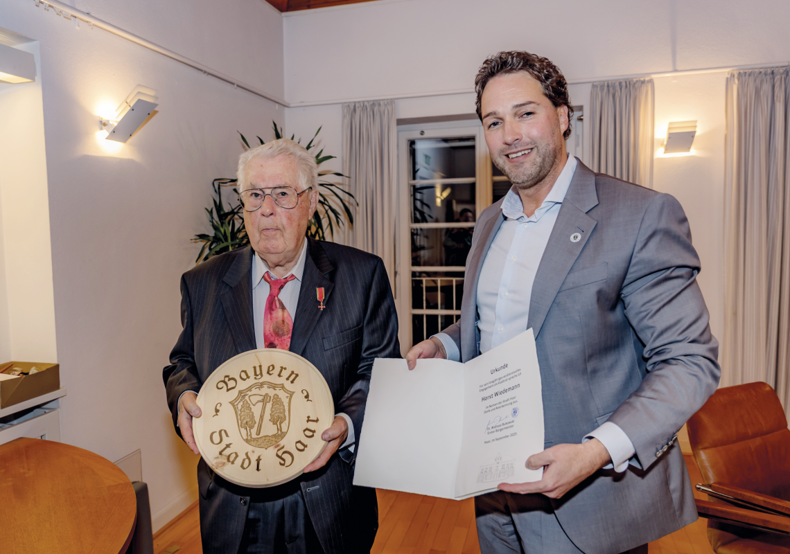 Er war der älteste aktive Kommunalpolitiker Bayerns – bis vor wenigen Tagen: Ende September verabschiedete sich Horst Wiedemann in Haar im Alter von sagenhaften 91 Jahren nach einem halben Jahrhundert vom Stadtrat. Wer aber denkt, da schloss einfach ein „alter Mann“ die Rathaustüre hinter sich, der irrt gewaltig. Horst Wiedemann ist ein echtes Phänomen, quasi das Haar-Gedächtnis und -Wissen auf zwei Beinen. Und zudem ein ganz besonderer Mensch, der viel bewegt hat – und der selbst eine bewegende Geschichte hat.