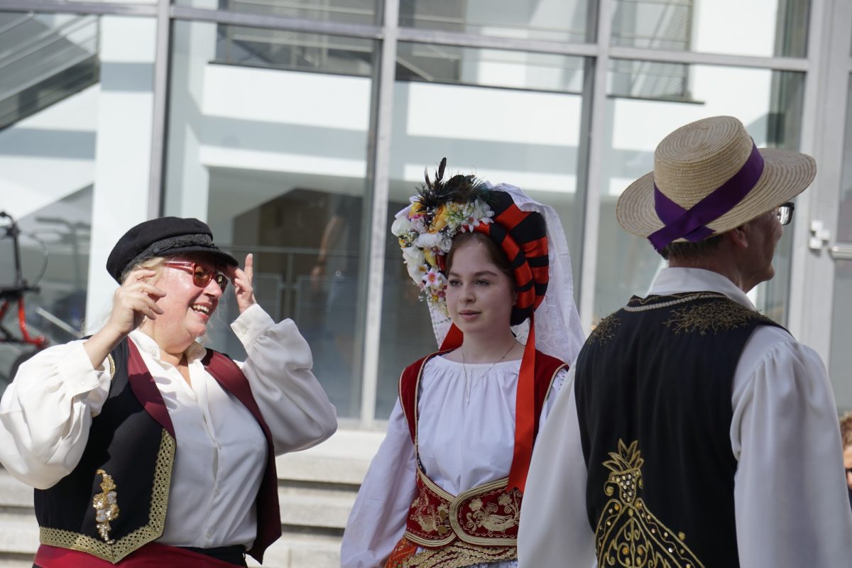 Eines scheint so sicher wie das Amen in der Kirche: wenn die Griechische Gemeinde in Haar zum Griechisch-Bayerischen Sommerfest auf dem Haarer Anger lädt, lautet der Dresscode: so bedeckt wie nötig, so luftig wie möglich. Das Thermometer zeigt auch 2025 Temperaturen, wie sie Hellenen sonst eher aus heimischen Gefilden in Südeuropa kennen. Unter weiß-blauen Himmel treibt aber nicht nur die mediterrane Hochsommerhitze den Schweiß auf die Stirn, sondern vor allem der Anblick der atemberaubenden Hebe- und Wurffiguren der Kirnarra sorgen für ein Quäntchen extra Nässe obendrauf. Kirnarra? Ja, ist denn schon wieder Fasching, fragen sich zufällig vorbeikommende Radler beim Anblick der wirbelnden Narrentruppe aus Kirchheim. „Nein“ kommt die beruhigende Antwort und zuprostend von einer Bierbank unter üppigen Sonnenschutz: „Der beginnt, wie gewohnt erst am elften November.“ Die Truppe wolle einfach mit ihrer rasanten Einlage zeigen, was sie könne, und wo wäre das besser möglich als auf einem ohnehin ausgelassenen Fest?
