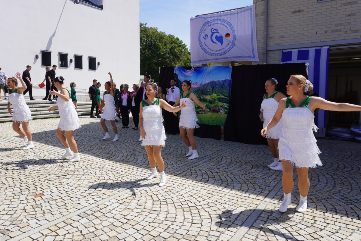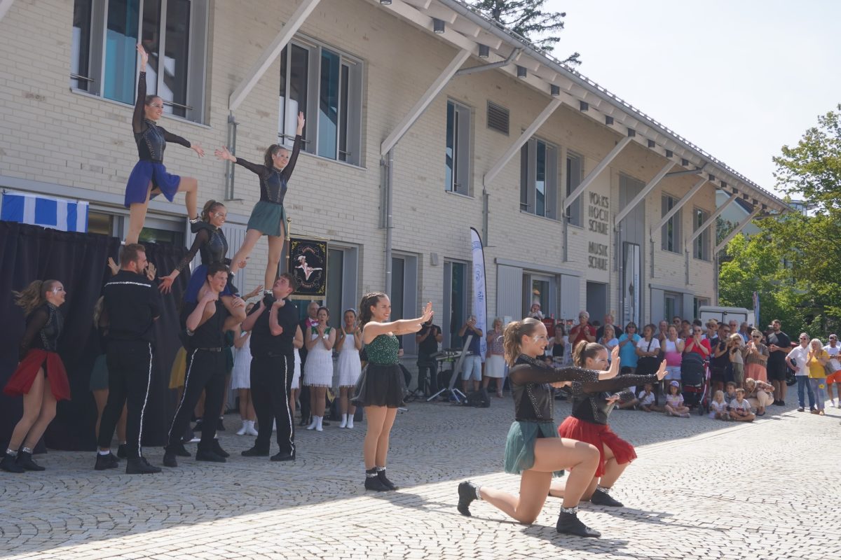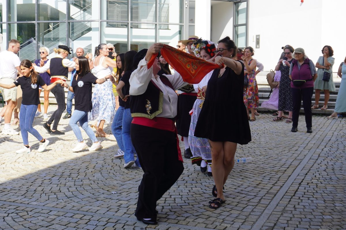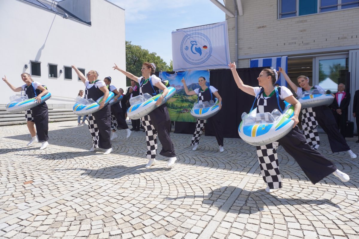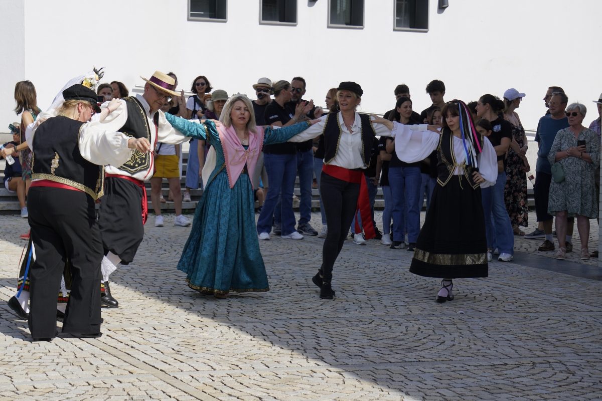 Eines scheint so sicher wie das Amen in der Kirche: wenn die Griechische Gemeinde in Haar zum Griechisch-Bayerischen Sommerfest auf dem Haarer Anger lädt, lautet der Dresscode: so bedeckt wie nötig, so luftig wie möglich. Das Thermometer zeigt auch 2025 Temperaturen, wie sie Hellenen sonst eher aus heimischen Gefilden in Südeuropa kennen. Unter weiß-blauen Himmel treibt aber nicht nur die mediterrane Hochsommerhitze den Schweiß auf die Stirn, sondern vor allem der Anblick der atemberaubenden Hebe- und Wurffiguren der Kirnarra sorgen für ein Quäntchen extra Nässe obendrauf. Kirnarra? Ja, ist denn schon wieder Fasching, fragen sich zufällig vorbeikommende Radler beim Anblick der wirbelnden Narrentruppe aus Kirchheim. „Nein“ kommt die beruhigende Antwort und zuprostend von einer Bierbank unter üppigen Sonnenschutz: „Der beginnt, wie gewohnt erst am elften November.“ Die Truppe wolle einfach mit ihrer rasanten Einlage zeigen, was sie könne, und wo wäre das besser möglich als auf einem ohnehin ausgelassenen Fest?