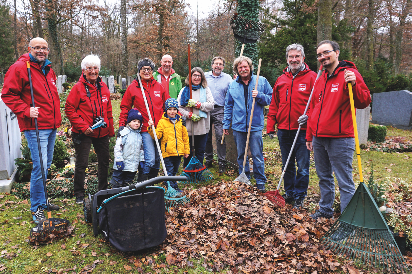 Mitglieder der Ortsverbände SPD und Grüne befreien den Waldfriedhof vom Laub