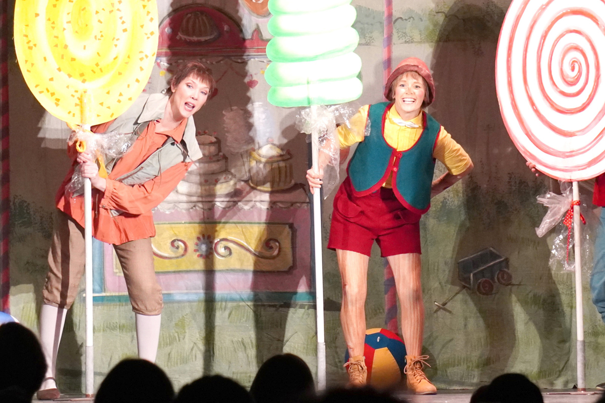 Wie das bei manchen Jungen so ist, vergisst Pinocchio schnell sein Versprechen und vertraut einmal mehr den beiden Fieslingen Fuchs und Kater, die ihn zu einer Fahrt in ein Wunderland, dem Land der Süßigkeiten und Spielzeuge, überreden. Seinen leichtfertigen Glauben muss er schnell büßen, denn das Wunderland verlässt Pinocchio mit Eselskopf und Eselschwanz. Indes sucht Geppetto verzweifelt nach seinem Pinocchio bis ihn ein riesiger Walfisch verschluckt. Zwischenzeitlich befreit die Fee Pinocchio von seiner Eselsgestalt. Der einfältige Junge hat nichts anderes zu tun und glaubt ein weiteres Mal den diebischen Betrügern Fuchs und Kater und landet ebenfalls im Bauch des Walfisches. Pinocchio ist traurig, denn noch immer schlägt kein richtiges Herz in seiner hölzernen Brust. Im Bauch des Walfisches kommt es endlich zur Wiedervereinigung von Vater und Sohn. Doch nicht nur dieser Wunsch geht in Erfüllung, denn zur großen Freude der beiden schlägt schon bald ein Herz in Pinocchios Brust. Das sehenswerte Musical vermittelt auf unterhaltsame Weise die pädagogische Intention des Werkes. Das Kind Pinocchio, unfertige in seiner Entwicklung, muss lernen die richtigen Entscheidungen zwischen Gut und Böse zu treffen, um zu reifen.
