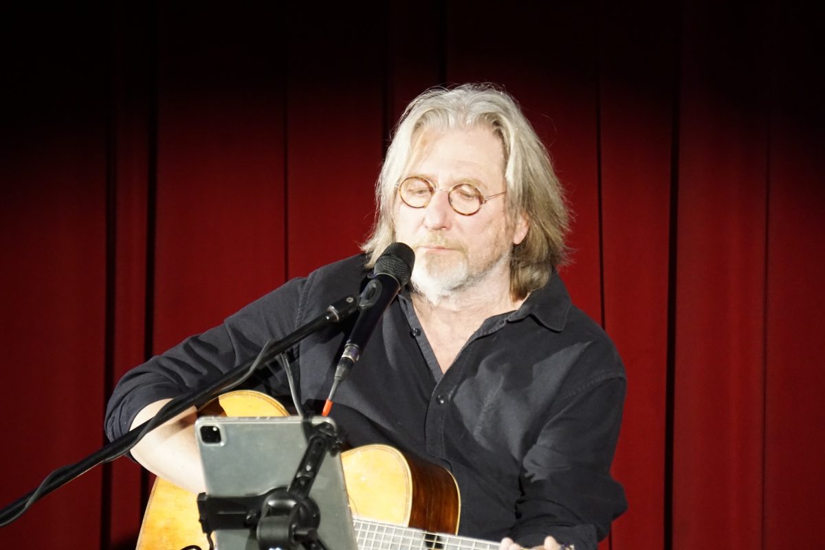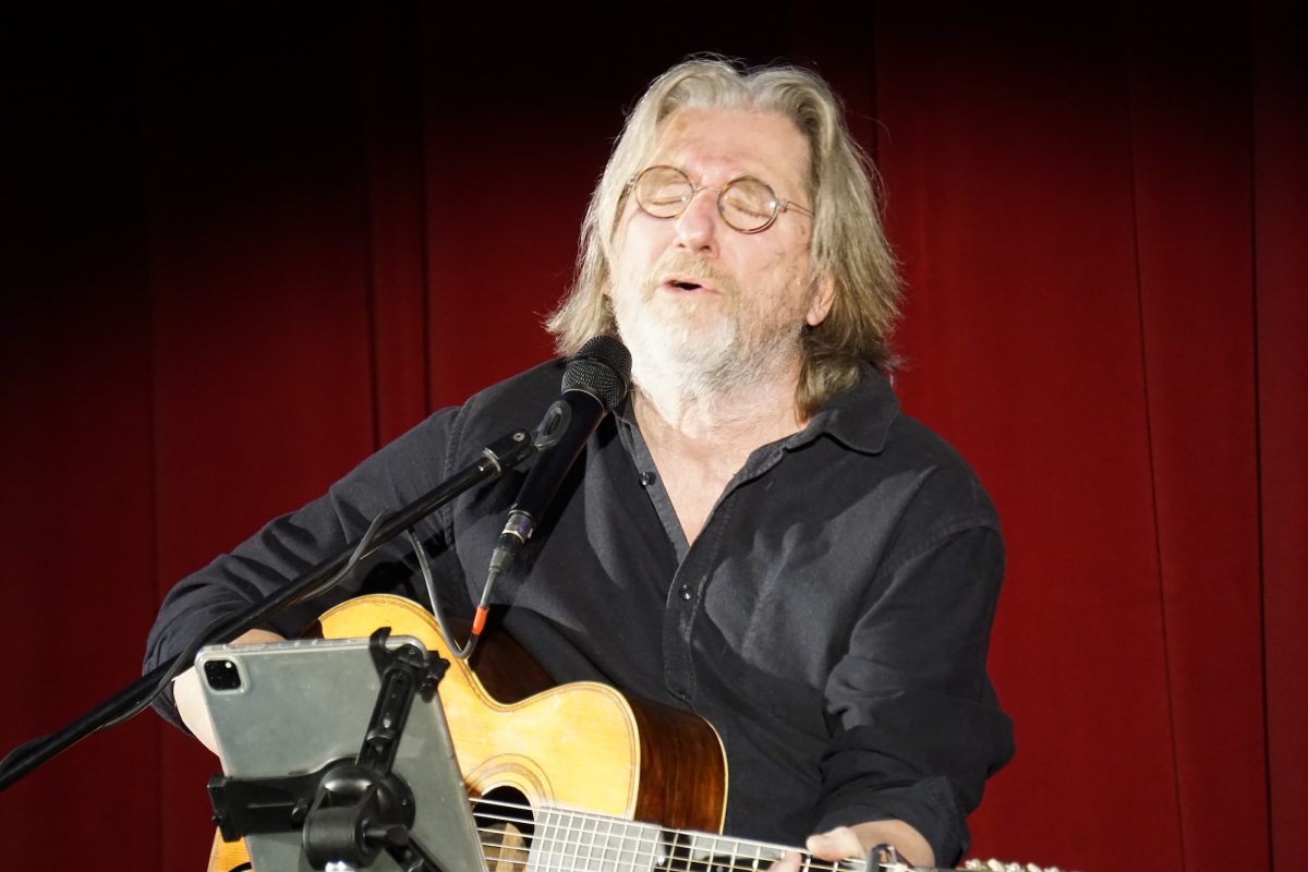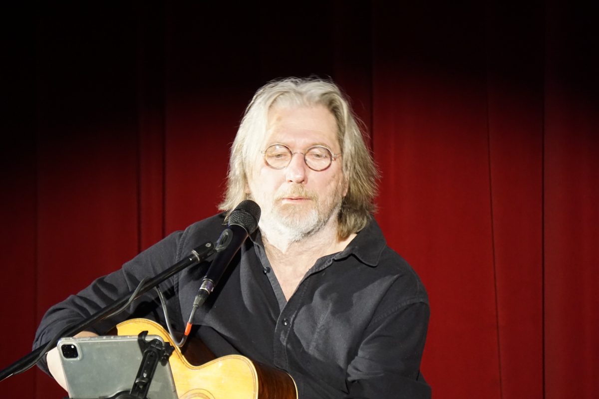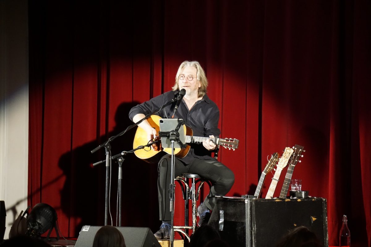 Michael Fitz gibt sich bodenständig und unprätentiös in seiner nicht ganz ausverkauften Vorstellung im Kleinen Theater Haar und bittet sein Publikum, das in den hintersten Reihen ein bisschen versprenkelt herumsitzt, weiter vorne Platz zu nehmen, bevor er sein erstes Lied anstimmt. Der Schauspieler zahlreicher Fernsehfilme und Serien wie „Marias letzte Reise“ oder „Die Toten von Salzburg“ und „Tatort“ und Kinofilmen wie „Der Trafikant“ spielt bereits seit seiner Jugend Gitarre. Seine erste Band gründet der damals 16-Jährige bereits 1974. Vor über 20 Jahren beginnt Fitz sich als „Liedermacher, Gitarrist und Poet aus Leidenschaft“ auf Projekte als Einzelkünstler zu konzentrieren. Seit 2008 begeistert er als Musiker in über 700 Auftritten sein Publikum in ganz Deutschland mit seinen inzwischen acht Solo-Programme.