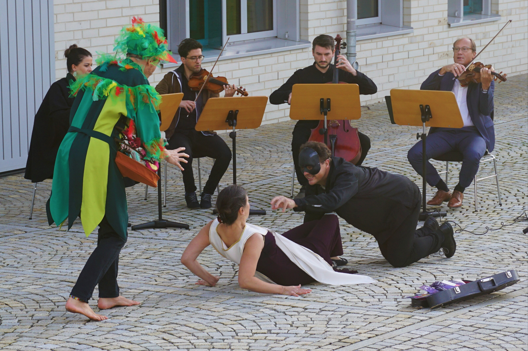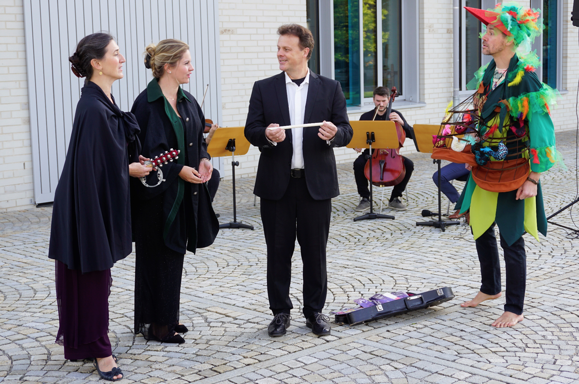 Wenn ein ausgewachsener Mann in einem Federkostüm eine Arie laut schmettert, wissen sogar Opern-Unkundige: das ist Papageno aus Wolfgang Amadeus Mozarts „Zauberflöte“. So weit so gut. Warum aber der Sänger bei recht kühlen Herbsttemperaturen barfuß auf dem Haarer Anger vor Menschen singt, ist selbst Anhängern klassischer Werke nicht auf Anhieb klar. Es handelt sich dabei um ein ganz besonderes Ensemble, das für eine Aufführung in Haar gastiert. Die „Oper auf Rädern“ ist ein Projekt der Internationalen Stiftung zur Förderung von Kultur und Zivilisation, das allen Menschen Kultur einfach zugänglich machen möchte. Statt der üblichen etwas steifen Atmosphäre eines ehrwürdigen Konzertsaals mit obligatorischer Abendrobe, darf es bei der „Oper im Taschenbuchformat“, unter freiem Himmel auf Bierbänken, die lässige Jeans sein. Es zischt auch niemand „pscht“, wenn die Kleinsten fröhlich lostanzen oder mit ihren Scootern geräuschvoll Kreise zu Mozarts Musik ziehen.