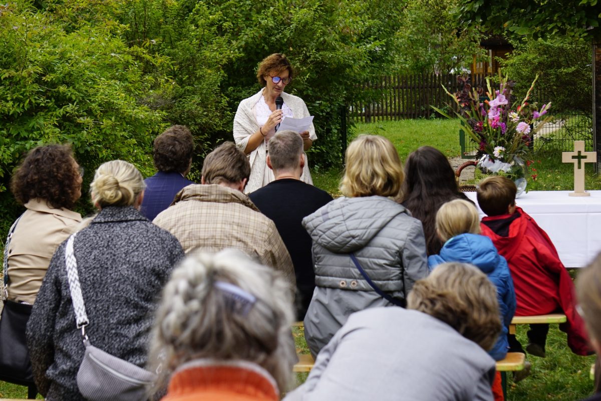 Im Garten des Evangelischen Horts in der Ferdinand-Kobell- Straße steht auf einem Tisch ein großes, farbenfrohes Haus aus LEGO- Steinen. Auf einem weiteren steht ein schlichtes Holzkreuz und ein schöner Blumenstrauß. Viele Erwachsene sitzen vor dem provisorischen Altar auf Bierbänken, während es sich zahlreiche Kinder auf den Spielgeräten drumherum gemütlich machen. Gemeinsam mit Pfarrerin Annedore Becker wollen sie das 50-jährige Bestehen ihres Horts feiern: „Ich habe mit den Kindern gewettet, dass sie es nicht schaffen innerhalb einer Woche gemeinsam ein LEGOHaus zu bauen“, beginnt Becker und stellt fest: „Ich lag schallend daneben.“ Die kleinen Bausteine ins Spiel zu bringen sei vielleicht eine Schnapsidee, aber es gehe in der Bibel auch um lebendige Steine: „Der erste ist Jesus und auf ihm ist ganz viel aufgebaut.“