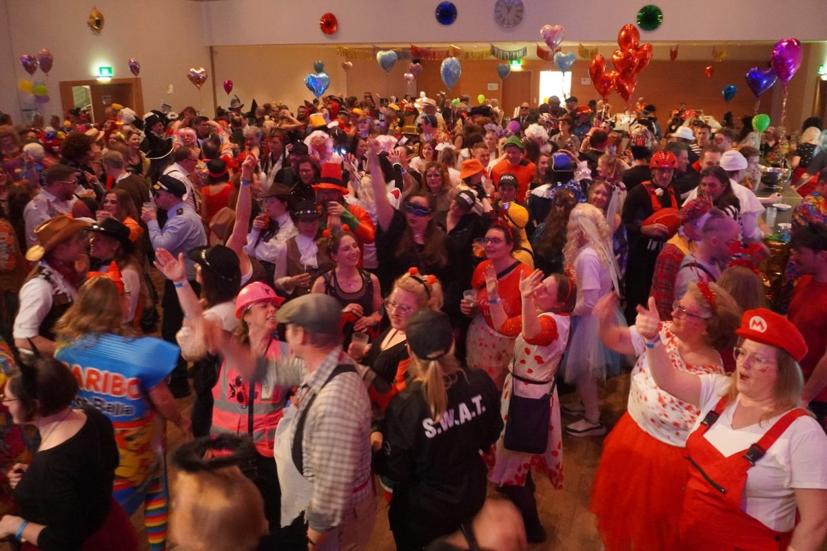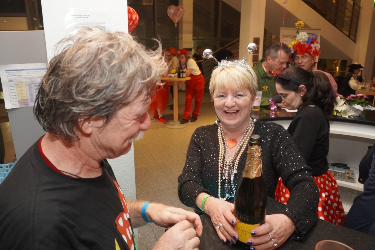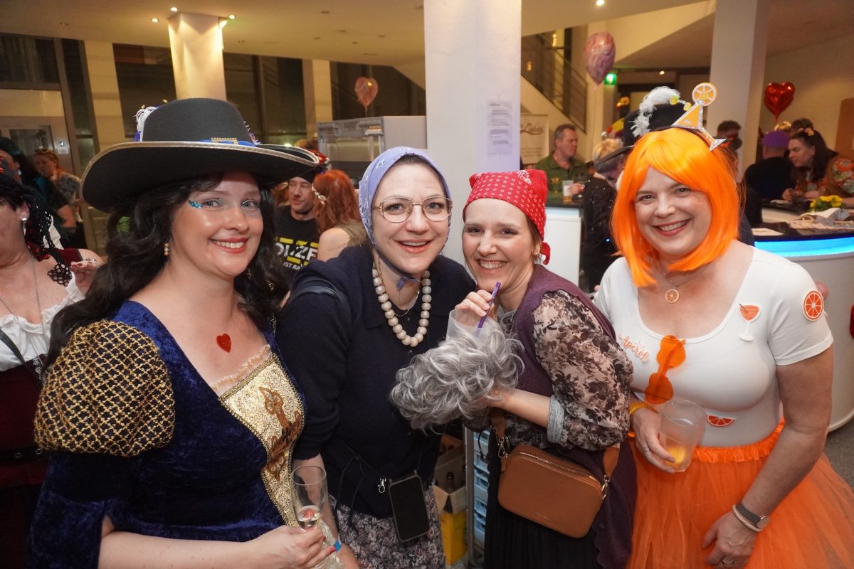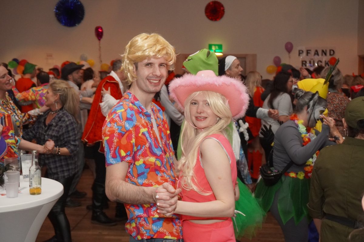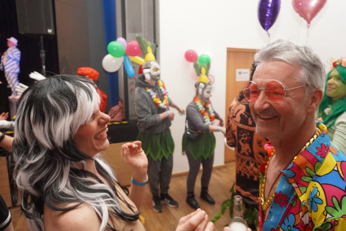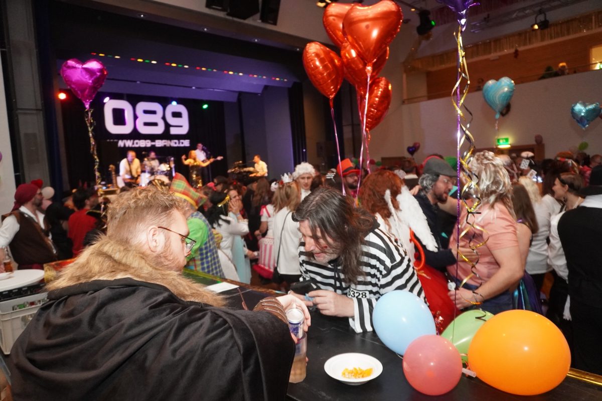 Konfetti versus Rosenblätter? Es gibt Momente, da geht beides. Es ist die ultimative Happiness-Fusion, die für den emotionalen Ausnahmezustand unter mehr als 500 fast, ganz oder gewillt verliebten Närrinnen und Narren im Bürgersaal sorgt. Sogar die kommunale Politprominenz unterschiedlicher Parteien, lässt den Kampf um die Plätze im nächsten Stadtrat sein und schwoft gemeinsam übers Parkett. Die Laune ist vorne, wie hinten, oben und unten gut, so viel steht fest. Manch einer weiß nach dem Genuss verschiedener promillehaltiger Getränke zu vorgerückter Stunde nicht mehr so genau, ob es Tränen der Rührung sind, weil „alle so lieb sind“ oder doch eher Schweißperlen, wegen der kunstvoll drapierten Zweithaare, die für einen gewaltigen Hitzestau im Oberstübchen sorgen.