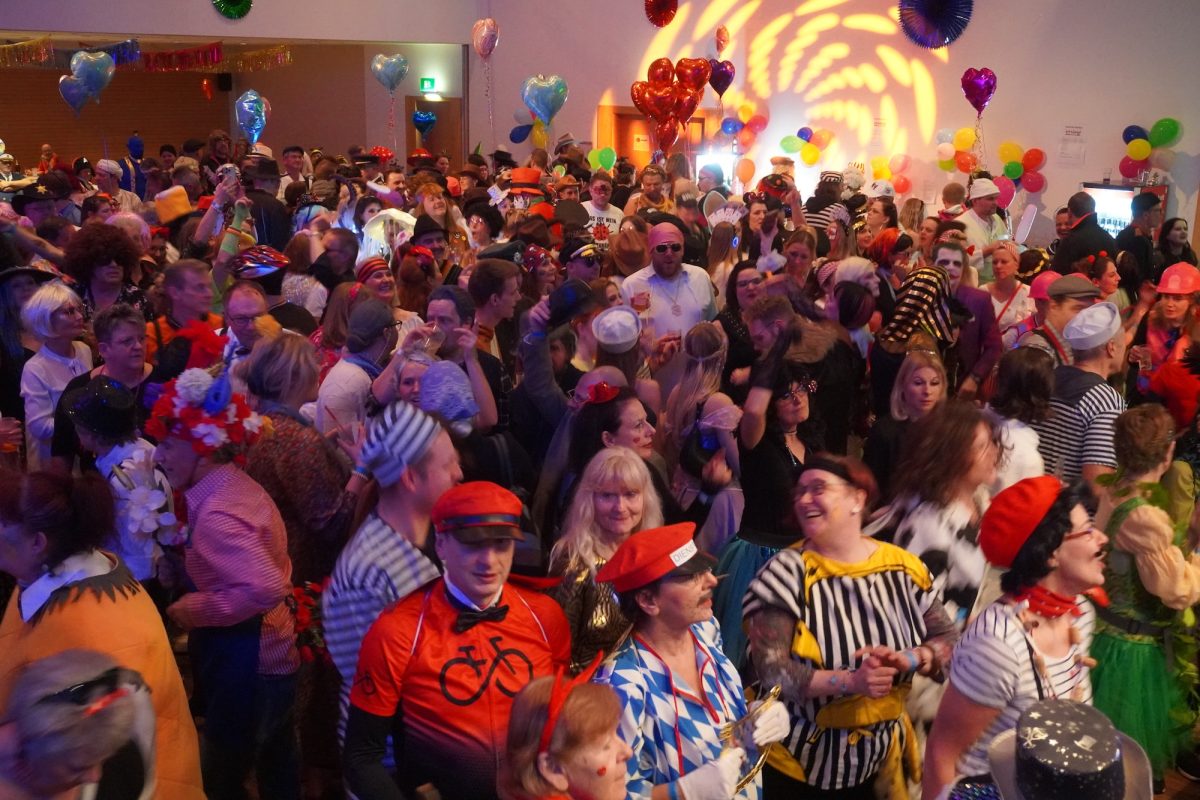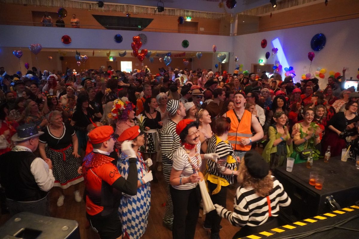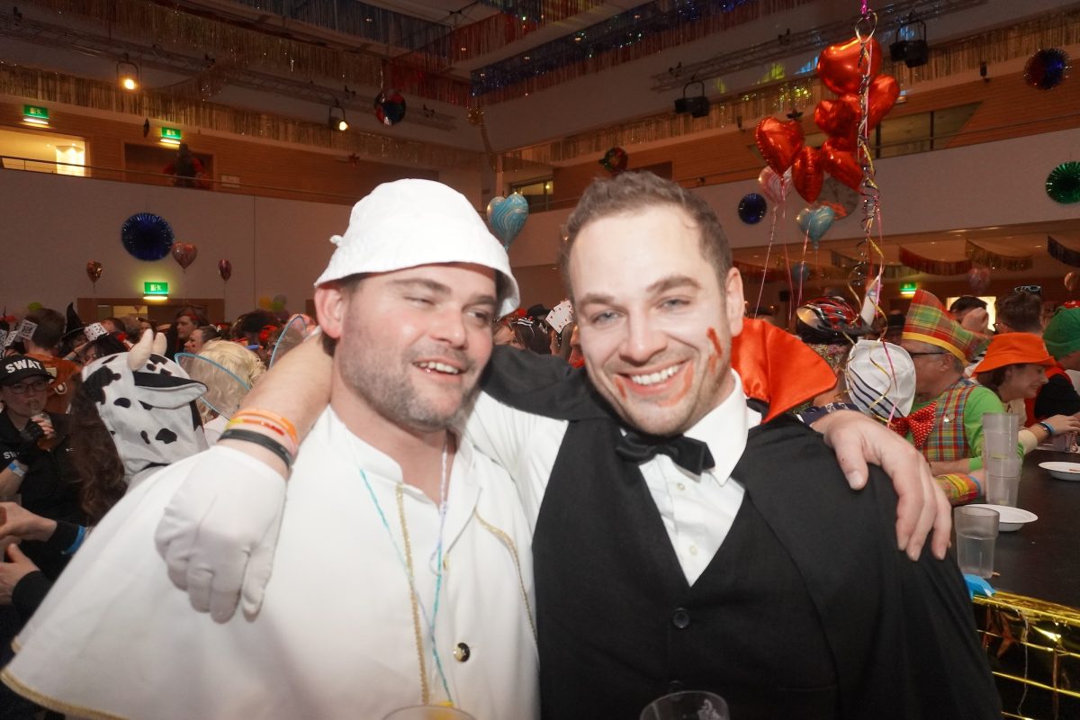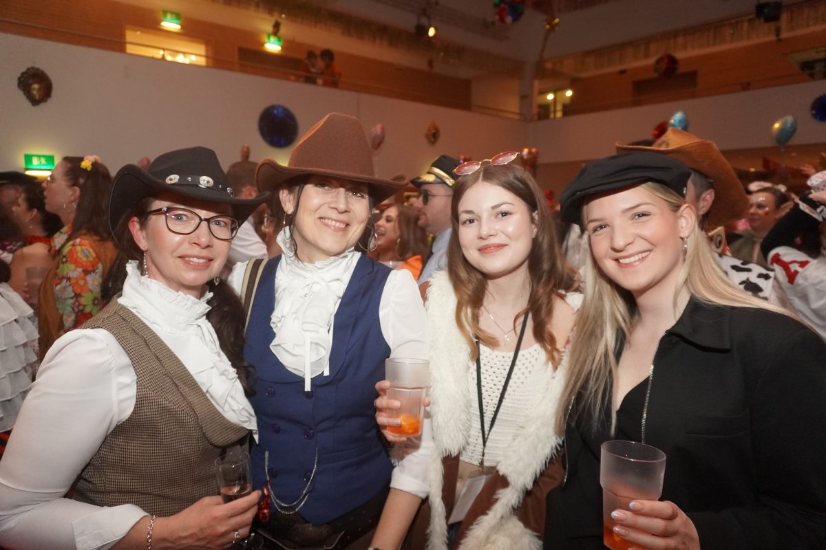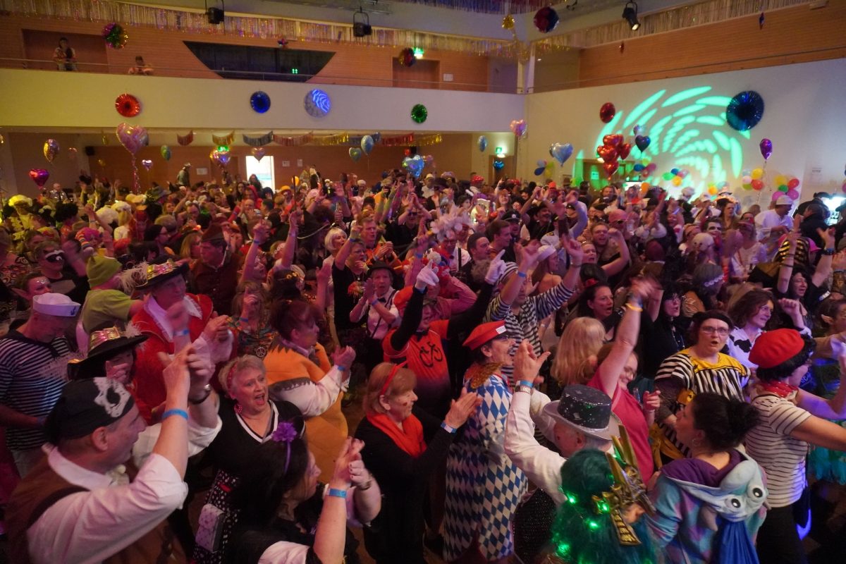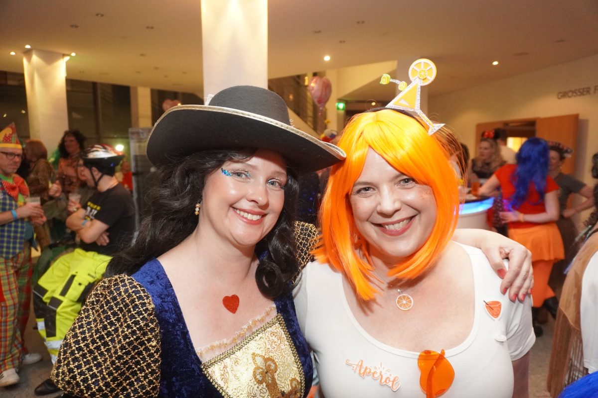 Konfetti versus Rosenblätter? Es gibt Momente, da geht beides. Es ist die ultimative Happiness-Fusion, die für den emotionalen Ausnahmezustand unter mehr als 500 fast, ganz oder gewillt verliebten Närrinnen und Narren im Bürgersaal sorgt. Sogar die kommunale Politprominenz unterschiedlicher Parteien, lässt den Kampf um die Plätze im nächsten Stadtrat sein und schwoft gemeinsam übers Parkett. Die Laune ist vorne, wie hinten, oben und unten gut, so viel steht fest. Manch einer weiß nach dem Genuss verschiedener promillehaltiger Getränke zu vorgerückter Stunde nicht mehr so genau, ob es Tränen der Rührung sind, weil „alle so lieb sind“ oder doch eher Schweißperlen, wegen der kunstvoll drapierten Zweithaare, die für einen gewaltigen Hitzestau im Oberstübchen sorgen.