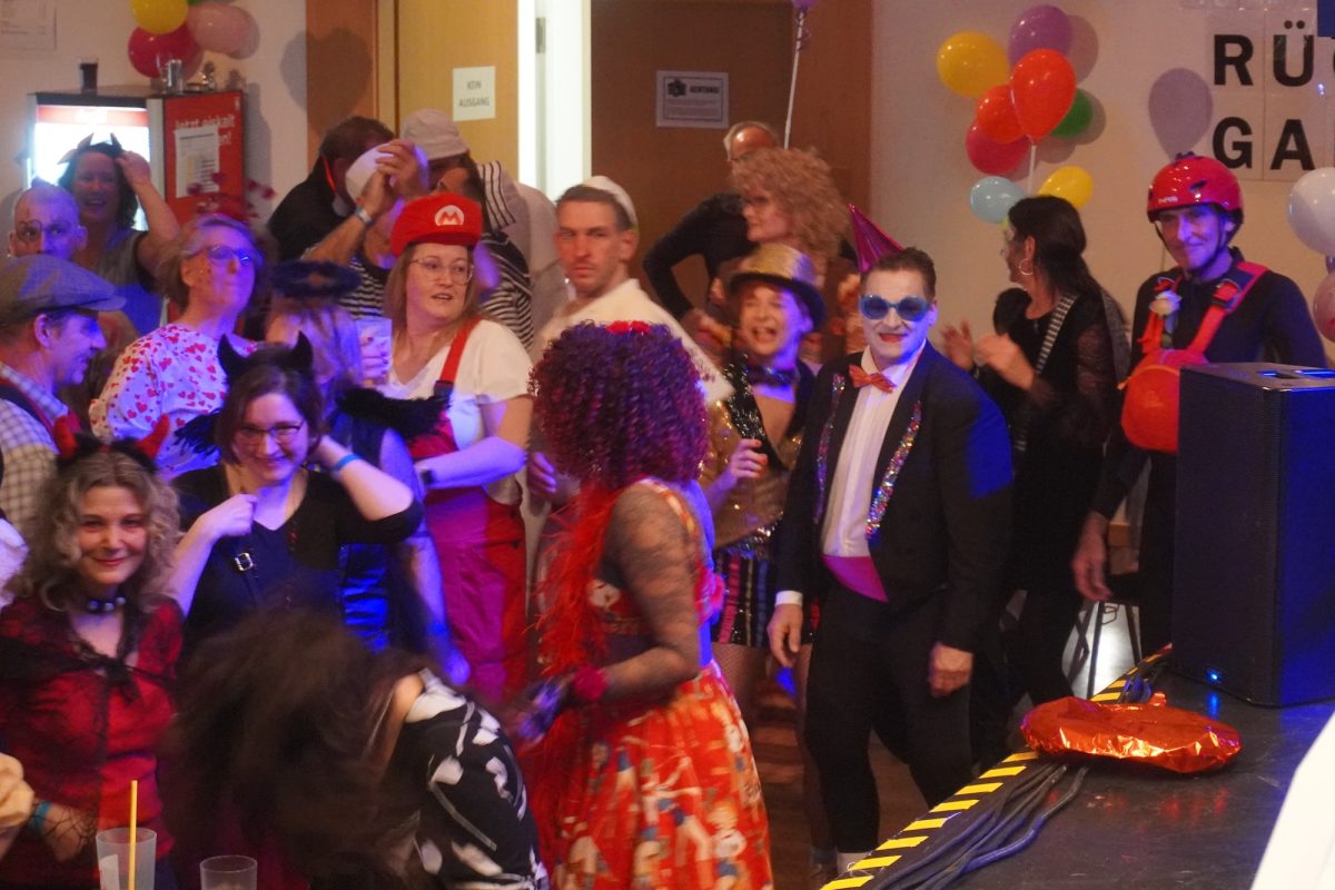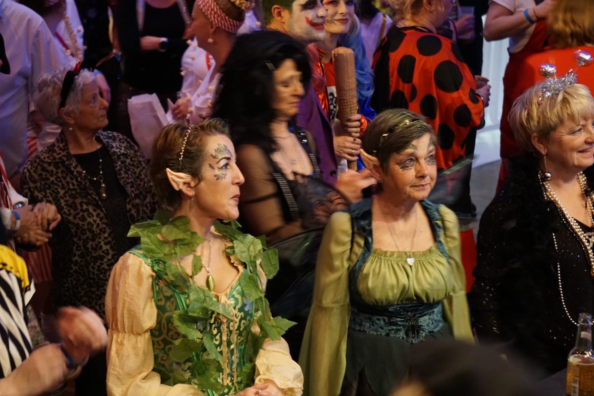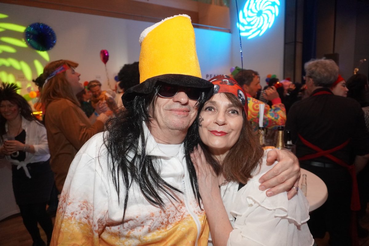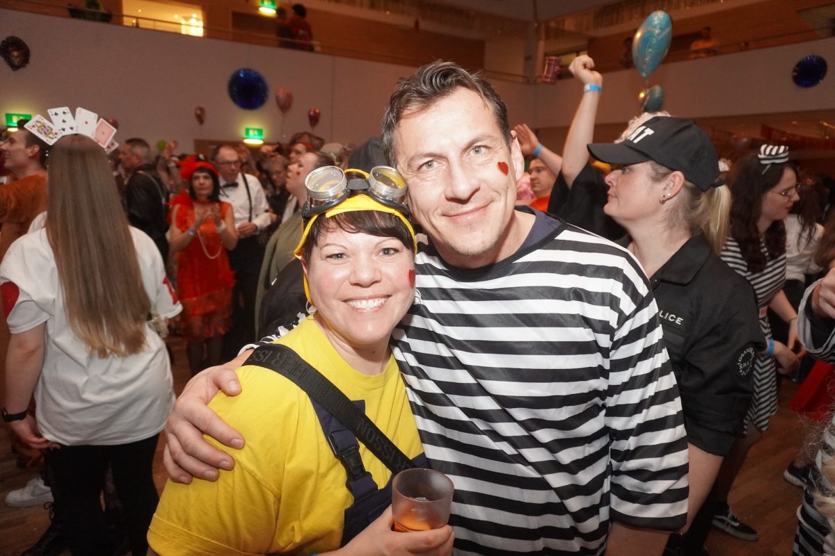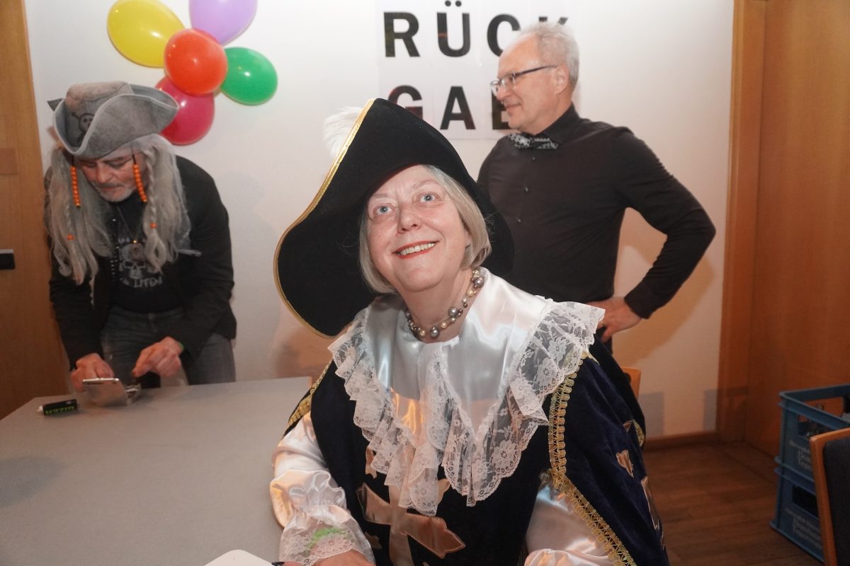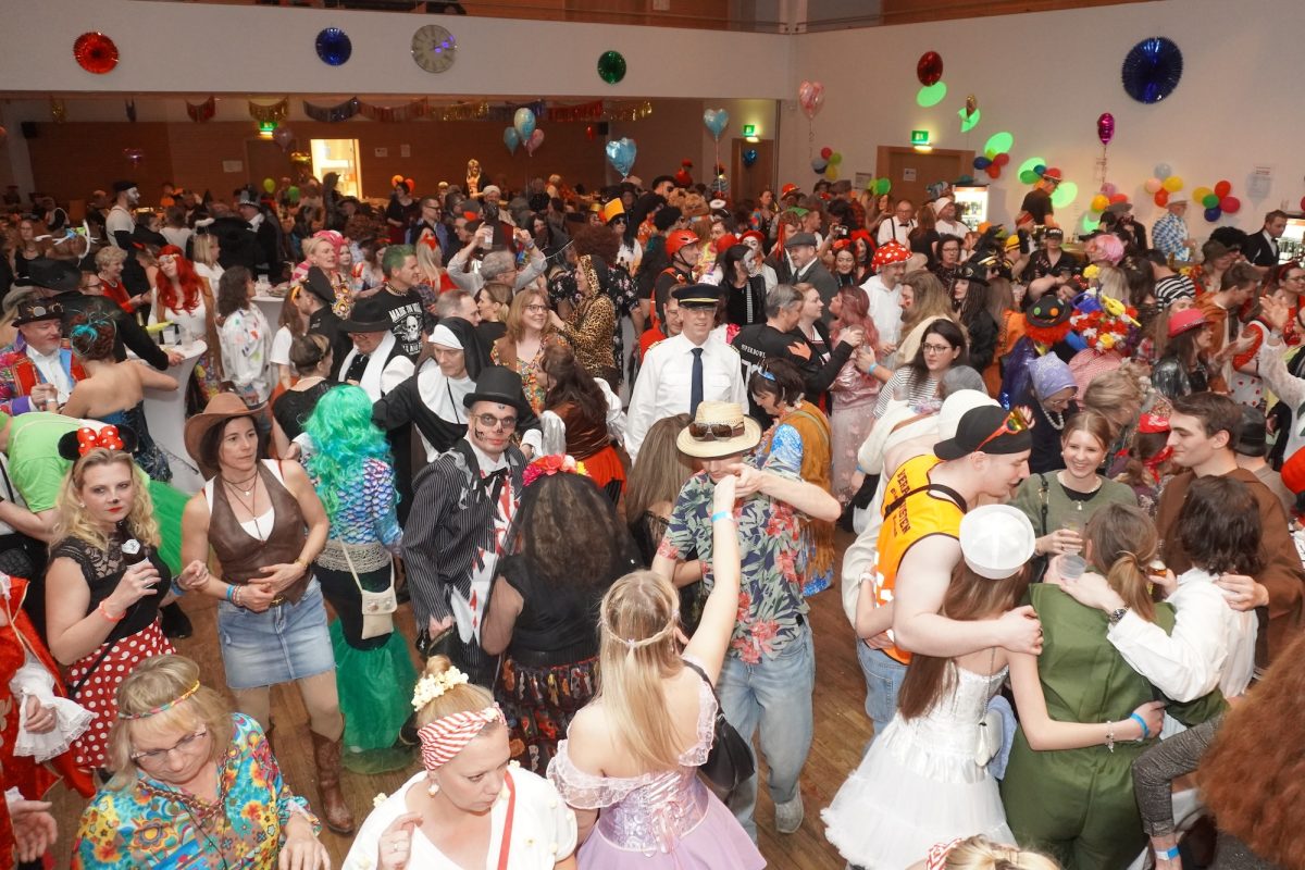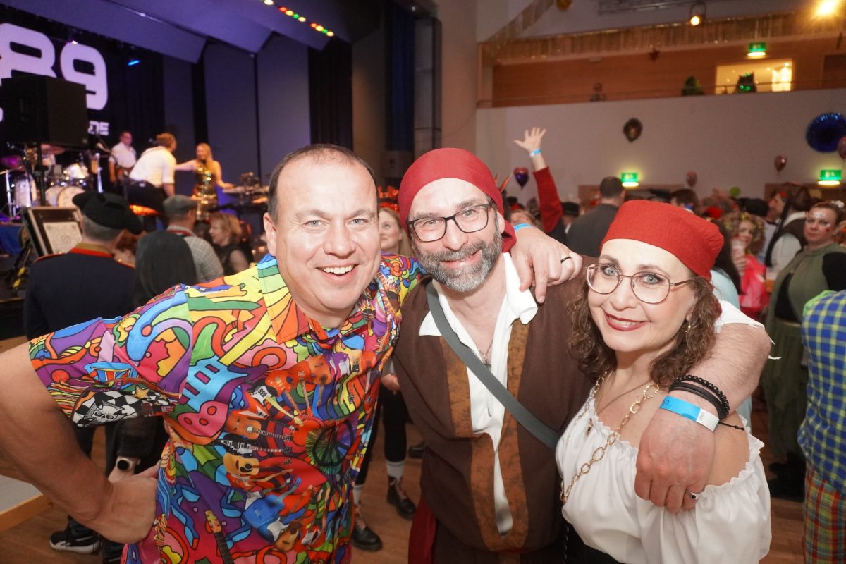 Konfetti versus Rosenblätter? Es gibt Momente, da geht beides. Es ist die ultimative Happiness-Fusion, die für den emotionalen Ausnahmezustand unter mehr als 500 fast, ganz oder gewillt verliebten Närrinnen und Narren im Bürgersaal sorgt. Sogar die kommunale Politprominenz unterschiedlicher Parteien, lässt den Kampf um die Plätze im nächsten Stadtrat sein und schwoft gemeinsam übers Parkett. Die Laune ist vorne, wie hinten, oben und unten gut, so viel steht fest. Manch einer weiß nach dem Genuss verschiedener promillehaltiger Getränke zu vorgerückter Stunde nicht mehr so genau, ob es Tränen der Rührung sind, weil „alle so lieb sind“ oder doch eher Schweißperlen, wegen der kunstvoll drapierten Zweithaare, die für einen gewaltigen Hitzestau im Oberstübchen sorgen.