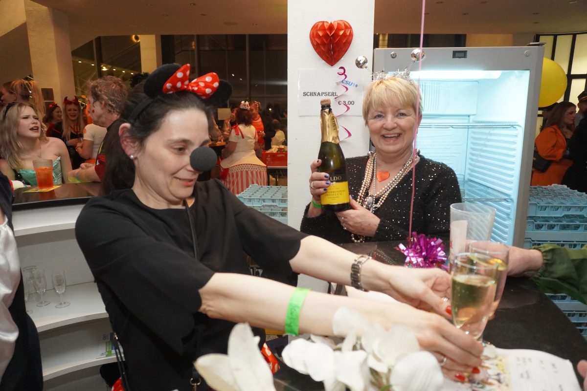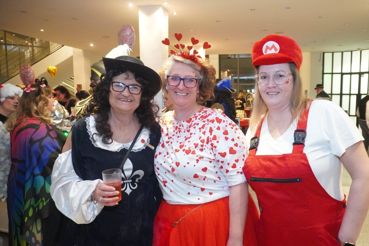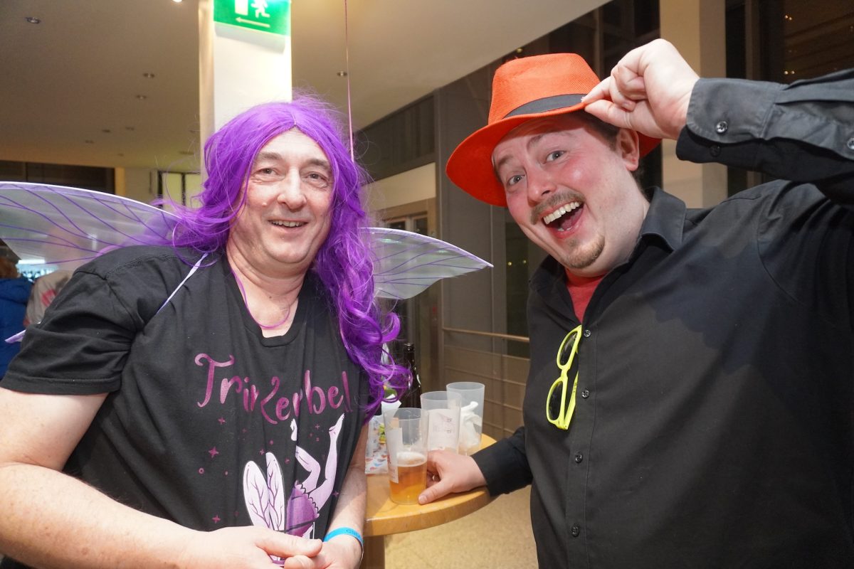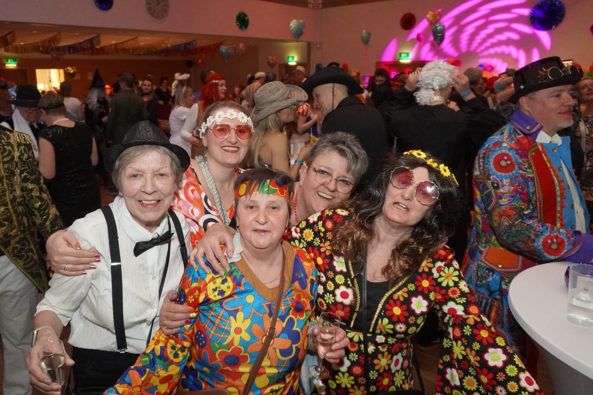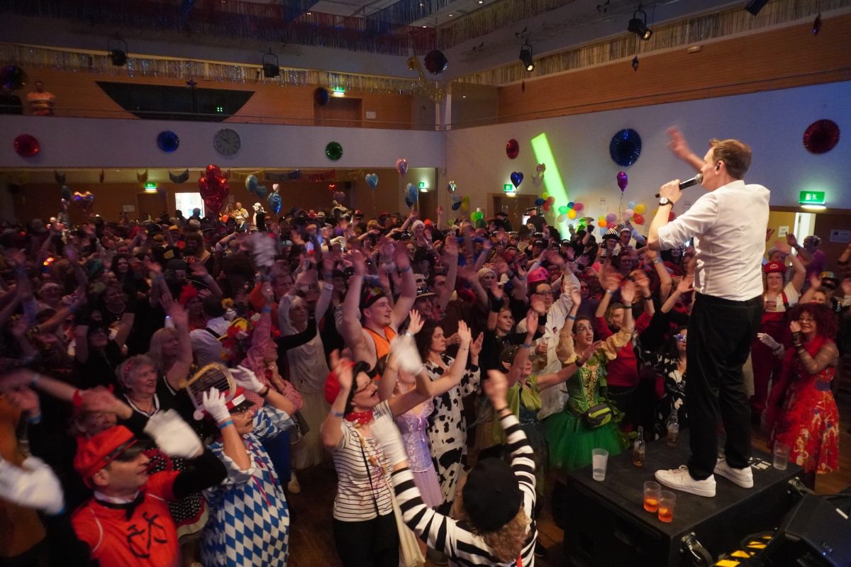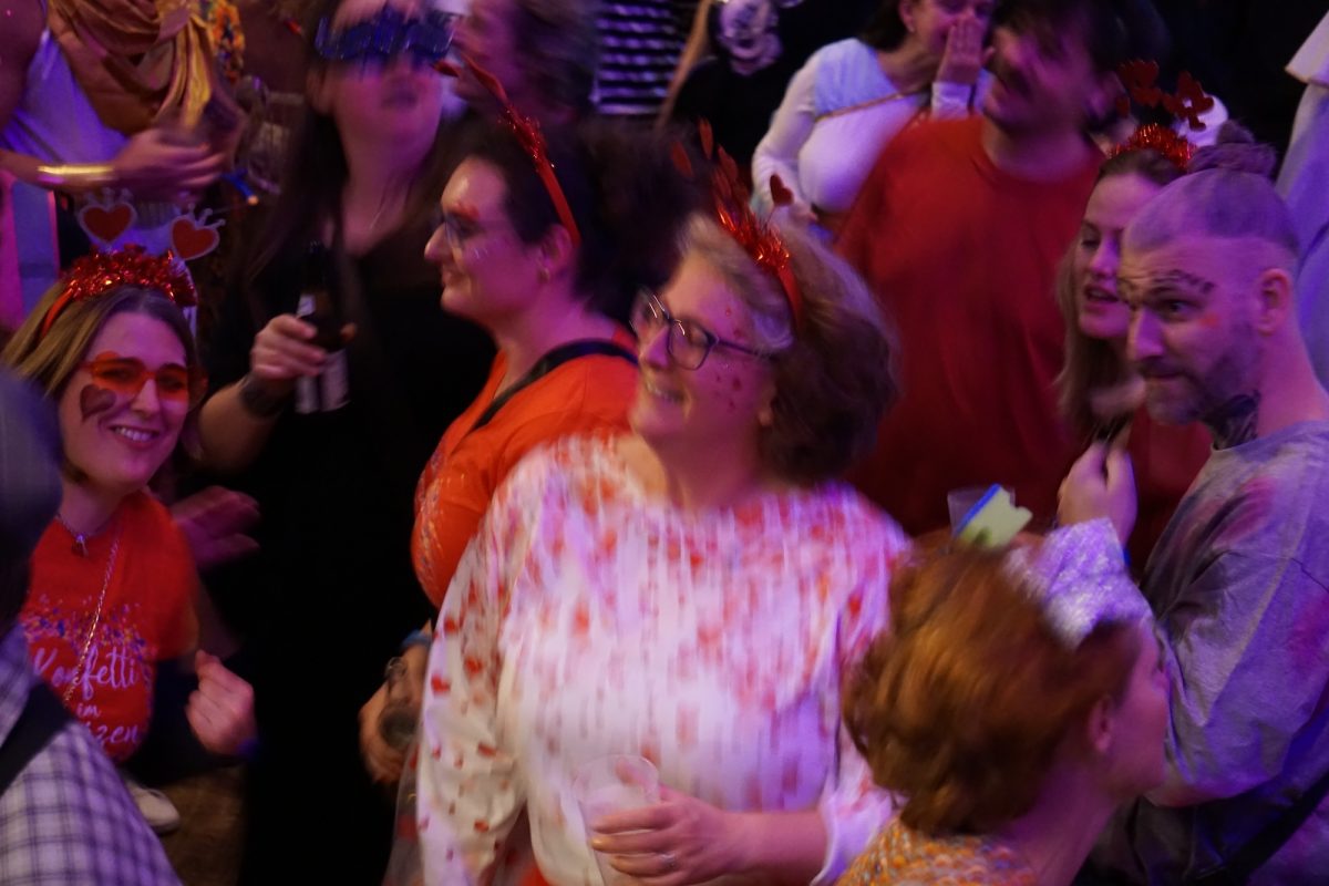 Konfetti versus Rosenblätter? Es gibt Momente, da geht beides. Es ist die ultimative Happiness-Fusion, die für den emotionalen Ausnahmezustand unter mehr als 500 fast, ganz oder gewillt verliebten Närrinnen und Narren im Bürgersaal sorgt. Sogar die kommunale Politprominenz unterschiedlicher Parteien, lässt den Kampf um die Plätze im nächsten Stadtrat sein und schwoft gemeinsam übers Parkett. Die Laune ist vorne, wie hinten, oben und unten gut, so viel steht fest. Manch einer weiß nach dem Genuss verschiedener promillehaltiger Getränke zu vorgerückter Stunde nicht mehr so genau, ob es Tränen der Rührung sind, weil „alle so lieb sind“ oder doch eher Schweißperlen, wegen der kunstvoll drapierten Zweithaare, die für einen gewaltigen Hitzestau im Oberstübchen sorgen.