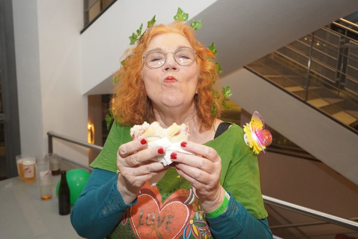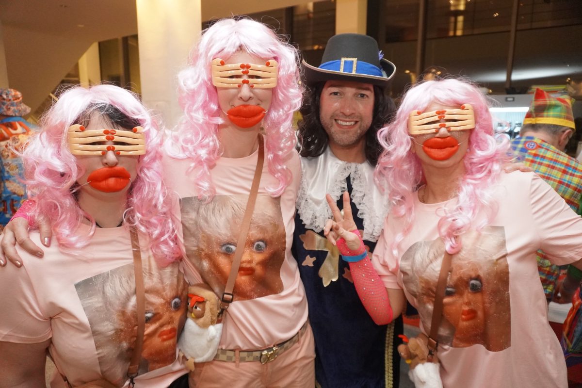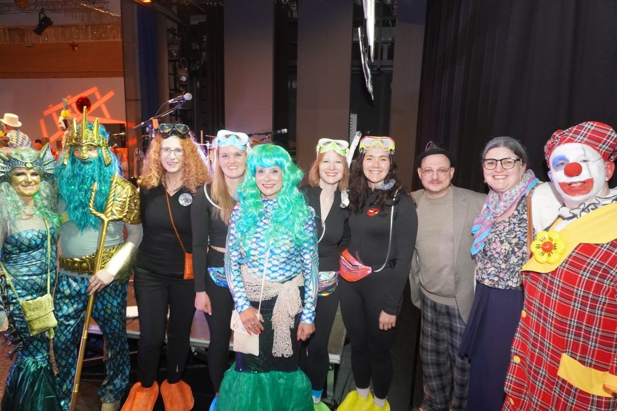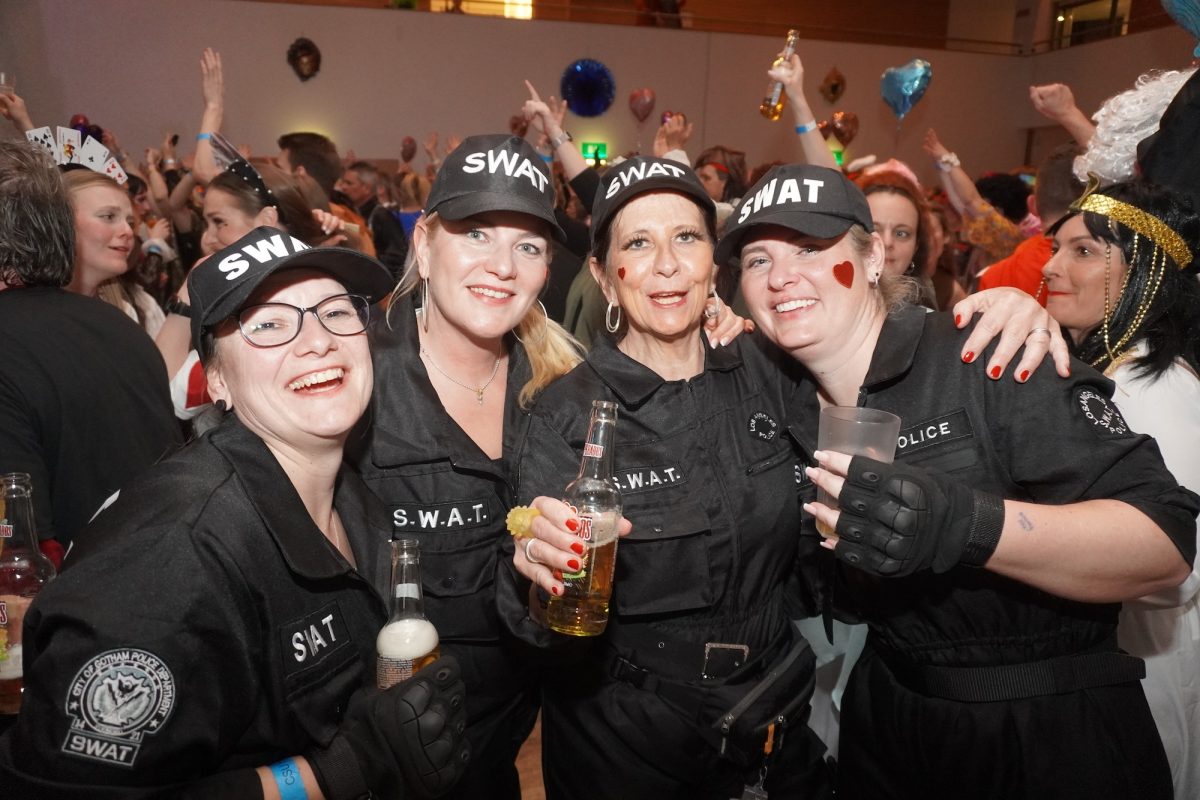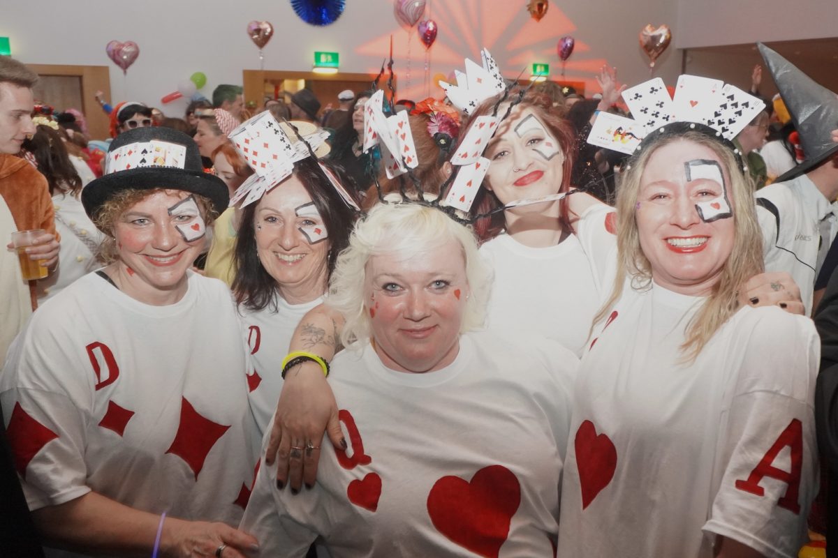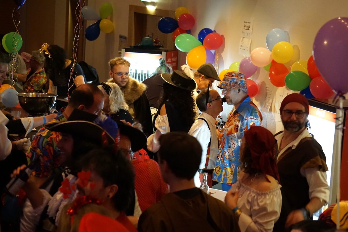 Konfetti versus Rosenblätter? Es gibt Momente, da geht beides. Es ist die ultimative Happiness-Fusion, die für den emotionalen Ausnahmezustand unter mehr als 500 fast, ganz oder gewillt verliebten Närrinnen und Narren im Bürgersaal sorgt. Sogar die kommunale Politprominenz unterschiedlicher Parteien, lässt den Kampf um die Plätze im nächsten Stadtrat sein und schwoft gemeinsam übers Parkett. Die Laune ist vorne, wie hinten, oben und unten gut, so viel steht fest. Manch einer weiß nach dem Genuss verschiedener promillehaltiger Getränke zu vorgerückter Stunde nicht mehr so genau, ob es Tränen der Rührung sind, weil „alle so lieb sind“ oder doch eher Schweißperlen, wegen der kunstvoll drapierten Zweithaare, die für einen gewaltigen Hitzestau im Oberstübchen sorgen.