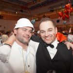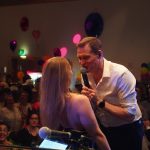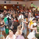 Wer in diesem Jahr in Sachen Faschings-Fashion vorne mitspielen will, setzt auf Originalität. Die heiße Politesse oder der scharfe Security-Chef scheinen zu pausieren, auch übergroße Schwingen an den Augen zeigen sich flügellahm. Dafür mischen sich auffällig viele Hochwürden unter die Menge, einer so das Gerücht, soll sogar echt sein! Viele feiern „von Kopf bis Fuß auf Liebe eingestellt“ als Valentino oder Valentina „in red“ mit viel Herz, andere setzen auf Ritterlichkeit, wie Rathauschef Andreas Bukowski. Als galanter Burgherr gewährt er den Gästen, darunter auch Freikartengewinner Magdalena und Martin Hellinger, höchstselbst am Tor fröhlich und formvollendet Einlass, viele direkt mit Handschlag. Manche Kostümideen setzen offenbar auf einen besonderen Auflösungseffekt durch Hitze, zumindest führen sie ein intensives Eigenleben. Nach massentauglichen Mitwipp-Songs der legendären und mitreißenden „089 Band“ und Alois Raths (CSU-Ortsgeschäftsführer) gesungener Aufforderung „Rote Lippen soll man küssen“, kapituliert auch das wasserfesteste Make-up. So mutiert manch schöner Schwan im Laufe des Abends zur Vogelscheuche – egal: Spaß macht´s trotzdem. Als konditionsreicher Tänzer gesichtet: Bürgermeisterkandidat Peter Schießl. Angesichts seiner taktsicheren Fähigkeiten warten tanzwillige Damen geduldig auf ihre Chance, um mit dem heiß begehrten, eine flotte Sohle aufs Parkett legen zu können.