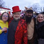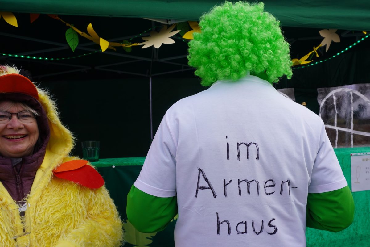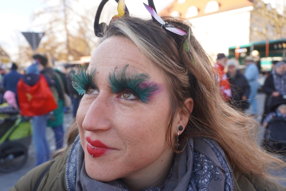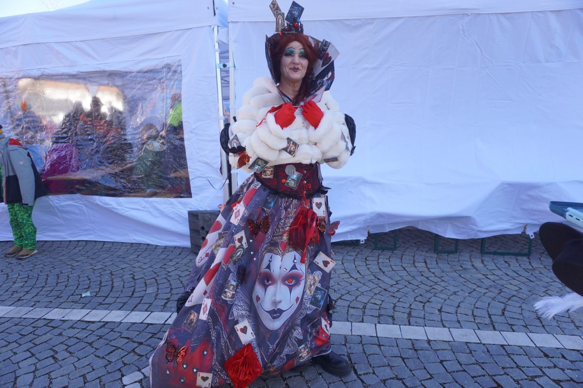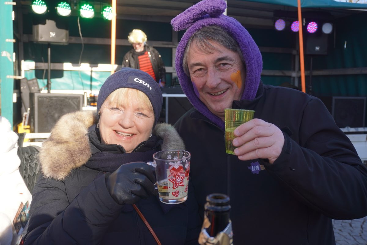 Es ist laut, fröhlich, feucht und in Punkto Optik komplett drüber. An den Ständen von CSU, UBH, SPD, Grüne oder FDP tummeln sich elfenhafte Feen mit Einhörnern, Matrosen und bunten Vögeln, gerne sehr knapp bekleidet. Auch der verrückte Hutmacher hat es aus Alice Wunderland nach Haar geschafft oder Rotkäppchen, genauso der 80er-Jahre Vokuhila und diverse Raubkatzen mit Polyester-Mähne, ob direkt aus dem Dschungel oder der Großstadt bleibt der eigenen Vorstellungskraft überlassen. Für den Getränke- und Essensnachschub und Menschtrauben sorgen neben Haars Freiwilliger Feuerwehr, die Disciples, die Schützengesellschaft und der Vorstand der Griechischen Gemeinde Apostolos Kotsis. Überall stehen schillernde Gestalten, starten eine Polonaise, fallen sich in die Arme und bejubeln den Auftritt der Kirnarra – mit zunehmend glasigen Augen. Es hat etwas von Klassenfahrt 2.0. Kein Wunder, wenn da hier und dort das Dach abhebt, wobei das auch mit dem Wolkenbruch inklusive zapfigen Schneeregen und heftigen Windböen in Zusammenhang steht, der gegen 18.30 unerbittlich den Kehraus ankündigt. Aber in Bayern allgemein und in Haar im Besonderen geht ja „a bisserl ollaweil“, daher lautet das abendliche Maschkera Motto kurzerhand: „Singing and dancing in the rain.“