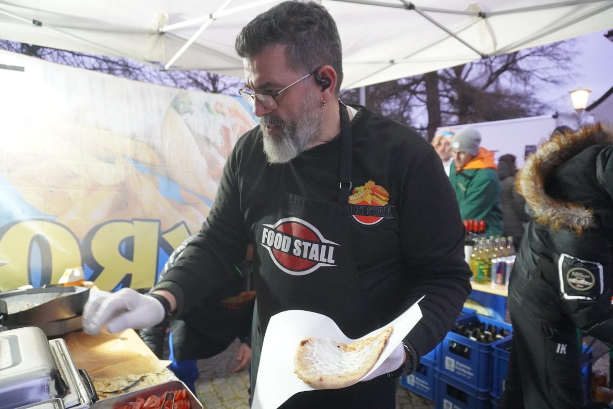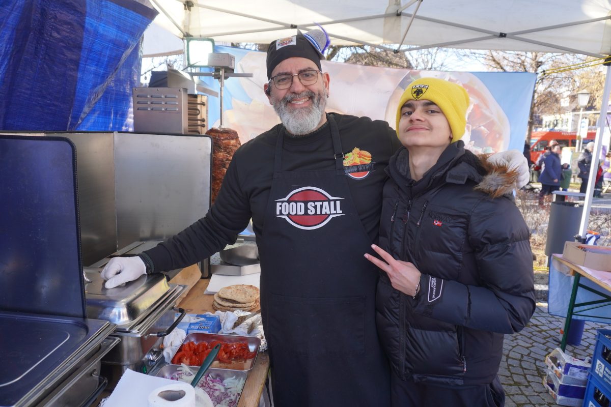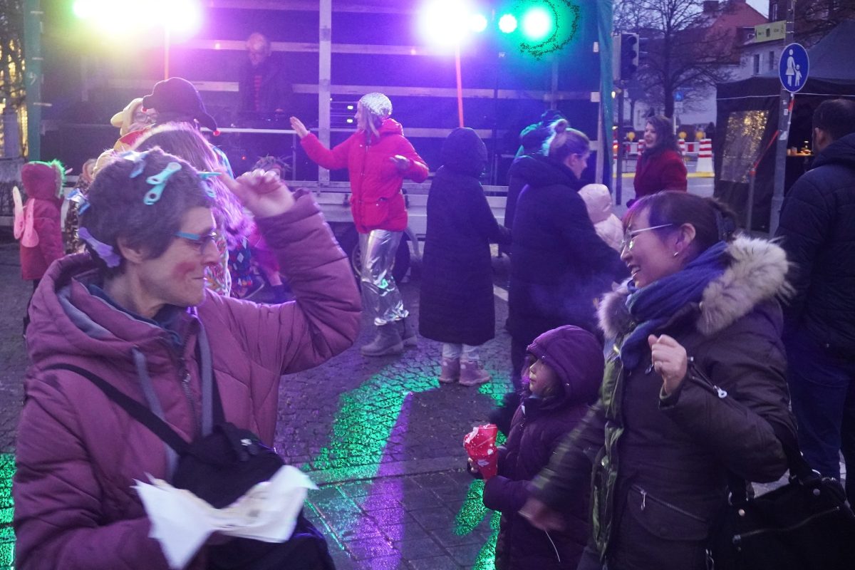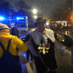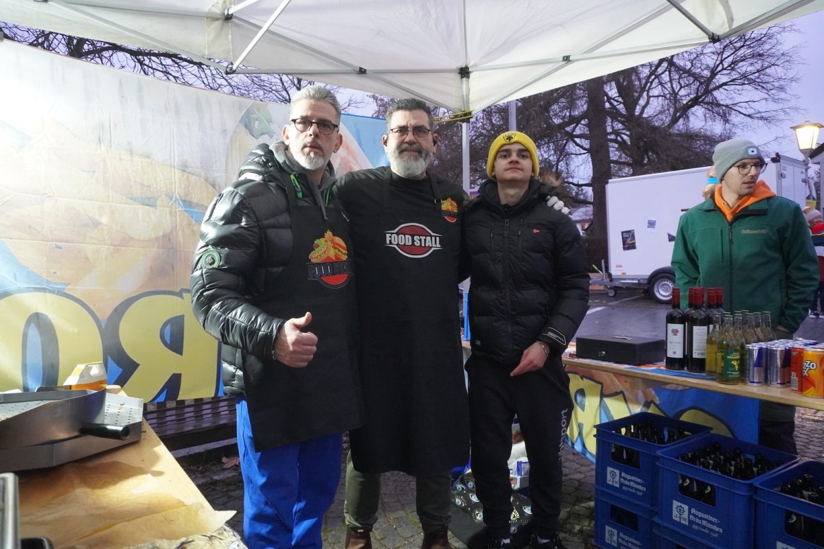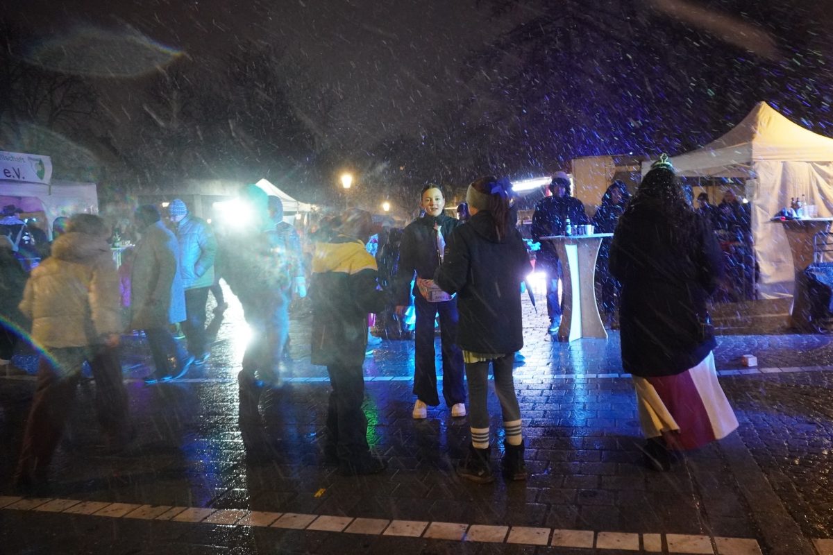 Es ist laut, fröhlich, feucht und in Punkto Optik komplett drüber. An den Ständen von CSU, UBH, SPD, Grüne oder FDP tummeln sich elfenhafte Feen mit Einhörnern, Matrosen und bunten Vögeln, gerne sehr knapp bekleidet. Auch der verrückte Hutmacher hat es aus Alice Wunderland nach Haar geschafft oder Rotkäppchen, genauso der 80er-Jahre Vokuhila und diverse Raubkatzen mit Polyester-Mähne, ob direkt aus dem Dschungel oder der Großstadt bleibt der eigenen Vorstellungskraft überlassen. Für den Getränke- und Essensnachschub und Menschtrauben sorgen neben Haars Freiwilliger Feuerwehr, die Disciples, die Schützengesellschaft und der Vorstand der Griechischen Gemeinde Apostolos Kotsis. Überall stehen schillernde Gestalten, starten eine Polonaise, fallen sich in die Arme und bejubeln den Auftritt der Kirnarra – mit zunehmend glasigen Augen. Es hat etwas von Klassenfahrt 2.0. Kein Wunder, wenn da hier und dort das Dach abhebt, wobei das auch mit dem Wolkenbruch inklusive zapfigen Schneeregen und heftigen Windböen in Zusammenhang steht, der gegen 18.30 unerbittlich den Kehraus ankündigt. Aber in Bayern allgemein und in Haar im Besonderen geht ja „a bisserl ollaweil“, daher lautet das abendliche Maschkera Motto kurzerhand: „Singing and dancing in the rain.“