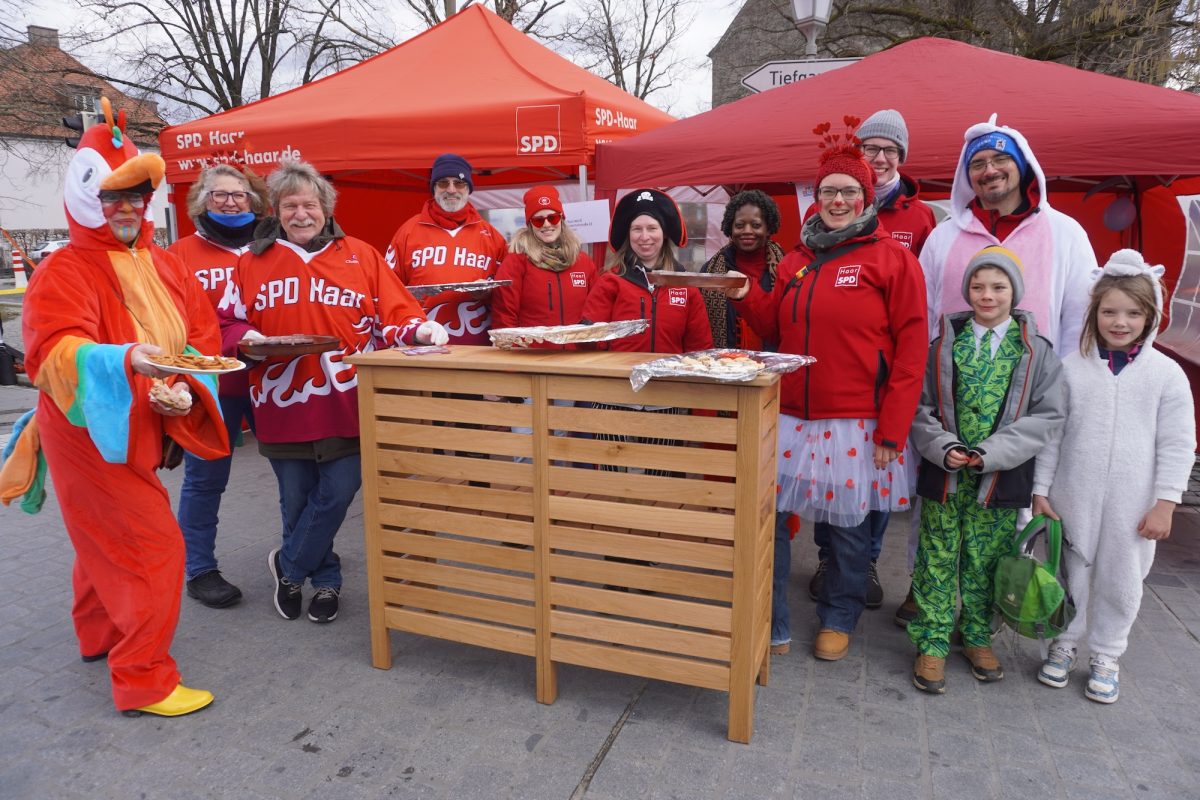 Die Wetterprognose für Faschingsdienstag in Haar? „Solala!“ Vielleicht sind das nicht die besten Bedingungen, doch für den Ausnahmezustand in Haar reicht´s allemal. Direkt nach dem Startschuss um 14 Uhr bewegt sich der Zeiger des Stimmungsbarometers unter Haars Närrinnen und Narren unaufhaltsam auf den Top-Wert „kuschelige Eskalation“ zu. Bunt gewürfelt und noch bunter bekleidet stehen Musketiere, Teletubbies, Burgherren, Eishockeyspieler und grellgrüne Fantasiegestalten zusammen, prosten sich zu und genießen das ausgelassene Treiben zu Dancefloor- Klassikern von DJ Mund. Wenn nicht zu „Maschkera“ in Haar, wann dann bietet sich die Gelegenheit sein Inneres nach außen zu kehren und am Maibaum als brustbehaarte Nonne in Strapsen ein fröhliches Tänzchen mit der süßen Astronautin auf dem Freiluft-Parkett zu wagen? „Das Wetter wird schon halten“, gibt sich Bürgermeister und Obermusketier Andreas Bukowski gen Himmel blickend zuversichtlich und stürzt sich ins Treiben. In diesem Jahr begeht der Rathauschef die finalen Faschingstage „2 in 1“, denn nur einen Tag zuvor, am Rosenmontag, feierte er seinen Geburtstag.