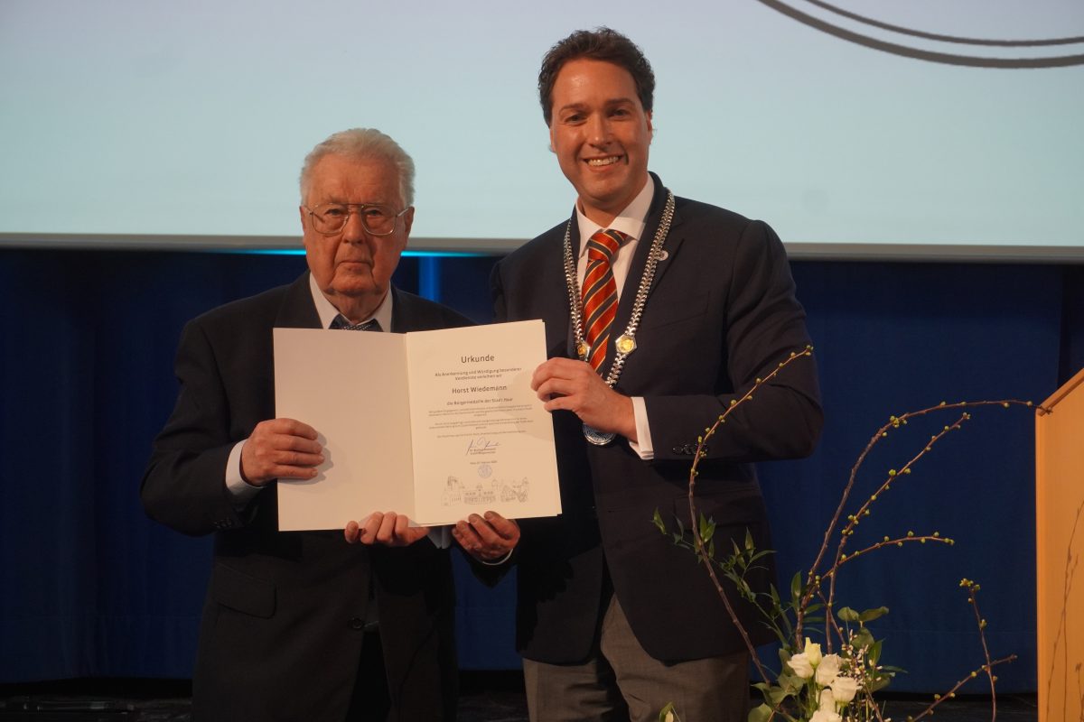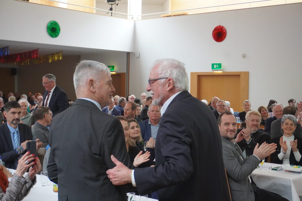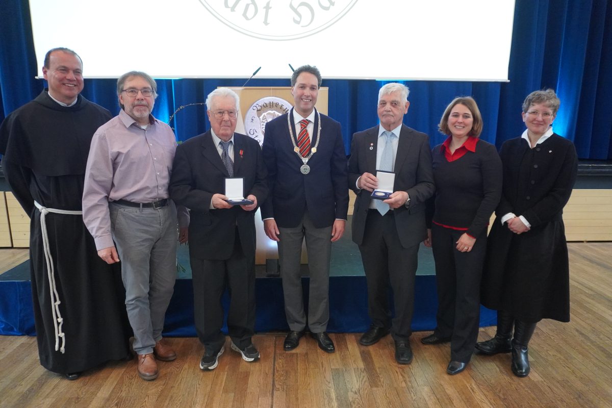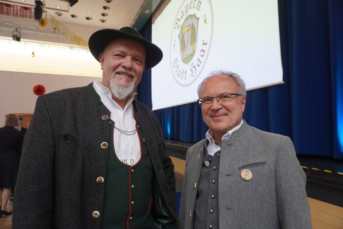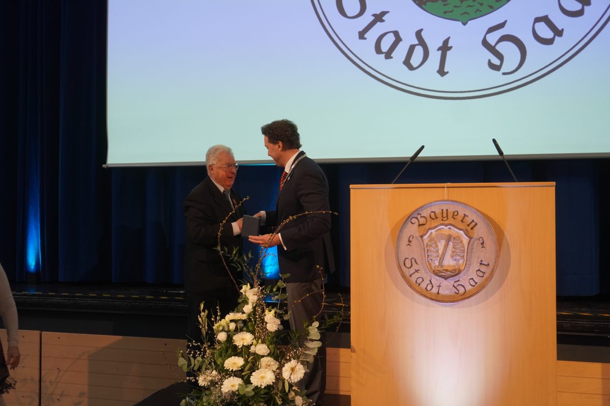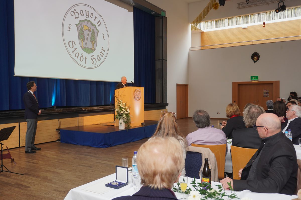 Nach 18 Jahren ohne Auszeichnungen, dürfen sich zwei besondere Bürger auf dem diesjährigen Neujahrsemfang der Stadt über die Bürgermedaille freuen. Sie gehört zu den höchsten Ehrungen, die Haar vergeben kann. Horst Wiedemann (SPD), erst kürzlich aus dem Stadtrat ausgeschieden und der ehemalige, langjährige Gemeinderat Hans Stießberger. Für die rund 300 anwesenden Stadträte, Vorstände verschiedener Institutionen und Vereine, Vertreter der Partnergemeinde Ahrntal (Südtirol), Landrat Christoh Göbel (CSU) und Landtagsabgeordnete Claudia Köhler (Grüne), Grund genug sich zu erheben, um langanhaltend und laut zu applaudieren. Wer die beiden kennt, weiß: Beide haben Haar mit Ausdauer, Herz und der Offenheit über den Tellerrand hinausblicken zu wollen, wichtige und nachhaltige Stempel aufgedrückt.