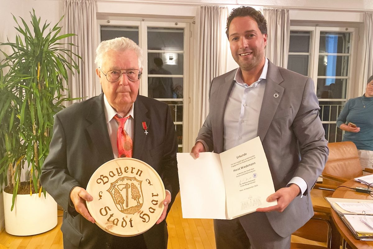 Wer sich mit topfitten 91 Jahren nach 50 Jahren und rund 1200 Sitzungen im Rat und verschiedenen Ausschüssen als ältester Gemeinde- und zuletzt Stadtrat ins Privatleben zurückzieht, kann das wahrlich mit erhobenem Haupt machen. Vor allem, wenn es sich um Horst Wiedemann handelt. Denn zu den Stunden in den verschiedenen Sitzungen addieren sich ungezählte der Besprechungen, Arbeitsgruppen und Fraktionssitzungen. Der Mensch Horst Wiedemann, als Kommunalpolitiker nimmermüde, zäh und zielorientiert, ist mit Haars jüngerer Geschichte untrennbar verbunden. Für seinen engagierten Kampf und das Erreichte bestens bekannt, genießt Wiedemann überparteilich höchsten Respekt.