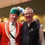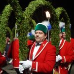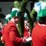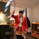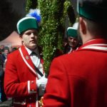Quasi hautnah kann das Publikum die historischen Tänze verfolgen. 25 Tänzer in traditioneller Kleidung, formen rhythmisch zu bestimmten Liedern der 15 Musiker, mit den verbindenden Buchsbaumbögen unterschiedliche Figuren wie „Kreuz“, „Laube“, „Schlange“ und „Krone“. Ein oder mehrere Kasperle springen dabei immer wieder unvorhergesehen ins Publikum und schwärzen mit Farbe die Nase von Groß und Klein. Es handelt sich um eine begehrte Markierung, denn sie soll Glück bringen. „Das Herausfordernde ist der Schritt. Nach zwei normalen Schritten folgt das Schlürfen. Den muss man verinnerlichen. Danach kann man sich auf die Choreografie konzentrieren“, erklärt Schiedermeier, der auf eine lange Schäffler-Tradition in der Familie blicken kann. Bereits dessen Ur-Urgroßvater beweist vor 152 Jahren als Mitglied im Fachverein der Schaeffler München seine tänzerischen Fähigkeiten: „Mein Urgroßvater mütterlicherseits hat es weitergeführt, war 1914 und 1921 Vortänzer und meine Mutter war 1949 als Siebenjährige und 1956 das Münchner Kindl, denn wir haben ja unser eigenes Mönchlein mit dabei.“ Schäffler müsse heute allerdings niemand mehr sein. Jeder sei im Verein willkommen, der „das Herz am rechten Fleck und Spaß an der Tradition hat“, so Schiedermeier: „Matthias Fürst, Leiter im Haarer Bauamt, ist Mitglied bei uns. Er hat sich durch die vielen Tanzroben durchgekämpft, es toll gemeistert und ist jetzt ein fester und wichtiger Bestandteil unserer Gruppe.“