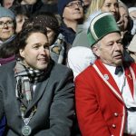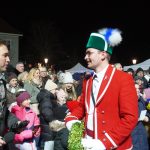 Dicht an dicht stehen mehr als 3000 Haarer vor dem Gasthof zur Post und warten gespannt, ratschend und lachend auf das Highlight der Feier zum ersten Jahrestag nach der Stadterhebung. Der freie Kreis in der Mitte verkleinert sich zunehmend, denn immer mehr drängeln sich Kinder aufgeregt nach vorne. Die Münchner Schäffler „are in town“! Nach ihrer Ankunft müssen sich die Tänzer zunächst den Minimalplatz für ihre besondere Tanzeinlage verschaffen. „Wir sind mit so einer Freude und Energie empfangen worden, das war unbeschreiblich schön“, strahlt Tänzer und Reifenschwinger Stefan Schiedermeier. Klar, sei das nicht mit dem Marienplatz in München vergleichbar, meint der Schäffler: „Aber in Haar war es ein ganz besonderer Auftritt. Es war enger und intimer, mit so einer positiven Reaktion, dass jedem das Herz aufgehen muss, der hier dabei sein durfte.“ Auch Bürgermeister Andreas Bukowski freut sich eher sicht- als hörbar über begeisterte Menschenmenge. Er muss bei seiner Ansprache gegen das minutenlange Kirchenläuten konkurrieren.