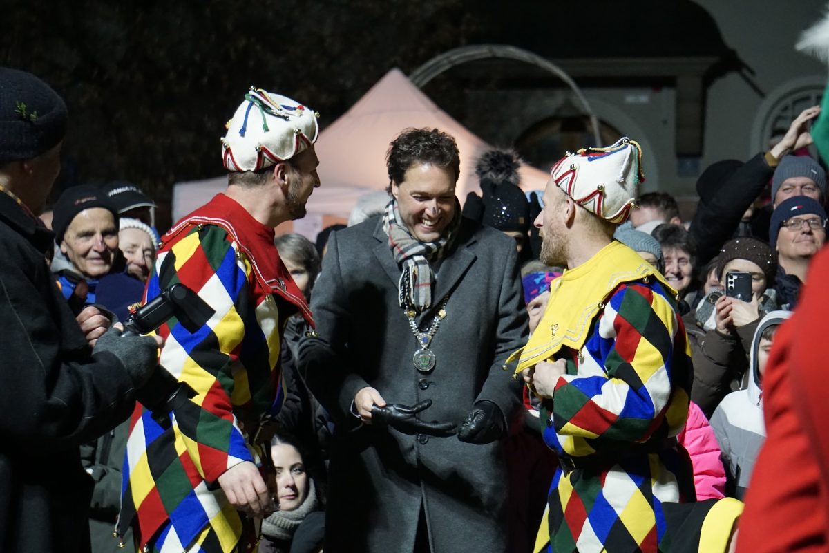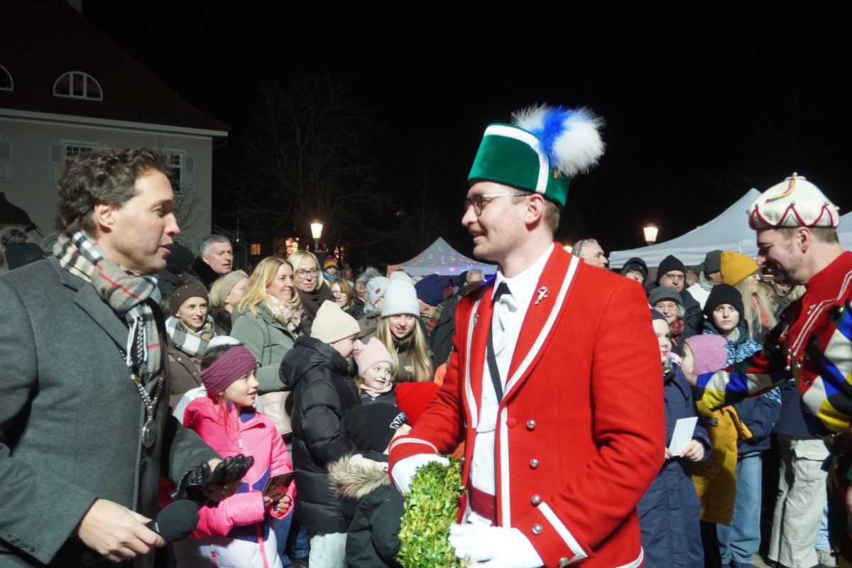 Dicht an dicht stehen mehr als 3000 Haarer vor dem Gasthof zur Post und warten gespannt, ratschend und lachend auf das Highlight der Feier zum ersten Jahrestag nach der Stadterhebung. Der freie Kreis in der Mitte verkleinert sich zunehmend, denn immer mehr drängeln sich Kinder aufgeregt nach vorne. Die Münchner Schäffler „are in town“! Nach ihrer Ankunft müssen sich die Tänzer zunächst den Minimalplatz für ihre besondere Tanzeinlage verschaffen. „Wir sind mit so einer Freude und Energie empfangen worden, das war unbeschreiblich schön“, strahlt Tänzer und Reifenschwinger Stefan Schiedermeier. Klar, sei das nicht mit dem Marienplatz in München vergleichbar, meint der Schäffler: „Aber in Haar war es ein ganz besonderer Auftritt. Es war enger und intimer, mit so einer positiven Reaktion, dass jedem das Herz aufgehen muss, der hier dabei sein durfte.“ Auch Bürgermeister Andreas Bukowski freut sich eher sicht- als hörbar über begeisterte Menschenmenge. Er muss bei seiner Ansprache gegen das minutenlange Kirchenläuten konkurrieren.
