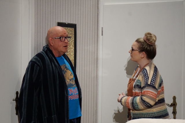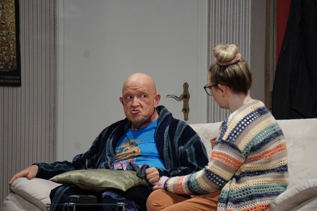 Für Laienschauspieler Martin Metzger, der in seiner Rolle als Erich Schwan in Steffi Kammermeiers Stück „Und ewig rauchen die Gelder“ komplett aufgeht, geht mit der Vorstellung ein Traum in Erfüllung: „Ich wollte schon immer im Kleinen Theater Haar spielen. Früher haben wir im Kinderheim Feldkirchen gespielt, dann sind wir ins Rathaus, das ist ok. Aber in diesem Ambiente ist es schon etwas ganz anderes, das ist halt Theater-Flair. Für uns war es schon sehr toll, da war ich schon ehrfürchtig, die Anspannung war noch größer.“ Ein Gespräch mit Intendant Matthias Riedel-Rüppel im vergangenen Jahr macht es möglich: „Er hat uns angeschaut und hat sich auf ein gewisses Wagnis eingelassen, dafür sind wir ihm sehr dankbar.“ Das Experiment geht auf – die Gags zünden im randvollen Theater: „Du nimmst die Reaktionen des Publikums schon wahr. Wenn die so lachen, musst du warten, bis sie ruhiger werden, sonst geht ja viel vom Text unter, insofern musst du auf sie eingehen, kurz innehalten und erst dann weiterspielen“, versucht Metzger die Vorgehensweise der Schauspielenden zu beschreiben: „Du darfst nie aus der Rolle gehen, sondern musst darauf achten, drin zu bleiben. Das ist wichtig, sonst kommst du raus. Das ist tatsächlich eine Herausforderung an die Konzentration.“