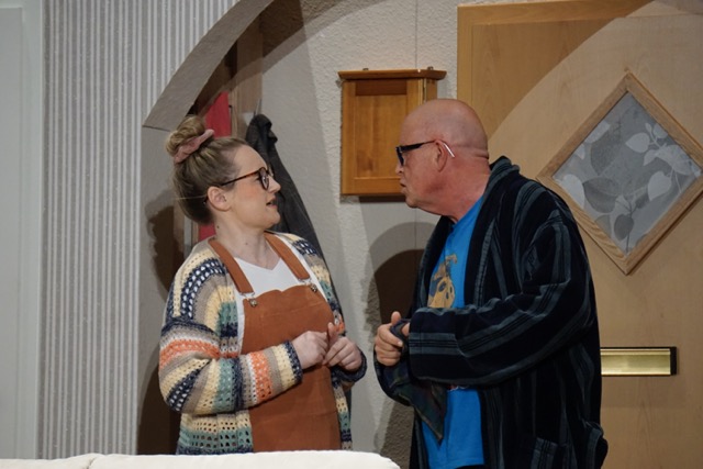 Bekanntermaßen pflegen viele Darsteller ein Ritual, auch Metzger igelt sich ein: „Eine Stunde vor Beginn gehe ich in mich, in die Person, die ich spiele und bin sie dann auch. Das ist meine Konzentrationsphase. Da braucht mich niemand mehr anzusprechen.“ Er befinde sich unmittelbar vor dem Auftritt in einem „kompletten Tunnel“: „30 Minuten vorher schießt das Adrenalin rein. Wenn´s los geht, musst du loslassen. Da darfst du nicht mehr überlegen, du hast dich ja lang vorbreitet und dann flutscht das. Ich glaube, dass das beim Zuschauer rüberkommt.“ Vor allem das Spiel zwischen Metzger und Thaller (Untermieter) sorgt beim Publikum für viel Gelächter: „Wir haben schon mal gemeinsam gespielt, das macht wirklich Spaß, weil es zwischen uns einfach passt“, sagt Metzger. Da sei auch BR-Regisseurin und Drehbuchautorin Stefanie Kammermeier zu verdanken. Sie kitzele von den Schauspielern des Feldkirchner Theatervereins das entscheidende „Mehr“ heraus, so Metzger und schwärmt: „Es ist schon etwas anderes mit einem Profi wie Steffi Kammermeier zusammenzuarbeiten. Sie kann einem viel beibringen und weiß, wie sie beim Einzelnen ansetzen muss. Sie hat da eine Gabe, deshalb spielen wir auf dem Niveau.“ Um ein Stück dieser Kategorie glaubhaft auf die Bühne zu stellen, brauche es auch gute Vereinsarbeit: „Die ist sehr strukturiert und koordiniert“, ist sich Metzger sicher. „Nächstes Jahr feiert er 50-jähriges Jubiläum. Es gibt Mitglieder, die so lange dabei sind. Wenn ich gefragt werde, warum ich dabei bin: Es macht mir einfach viel Spaß, da kann ich total abschalten.“