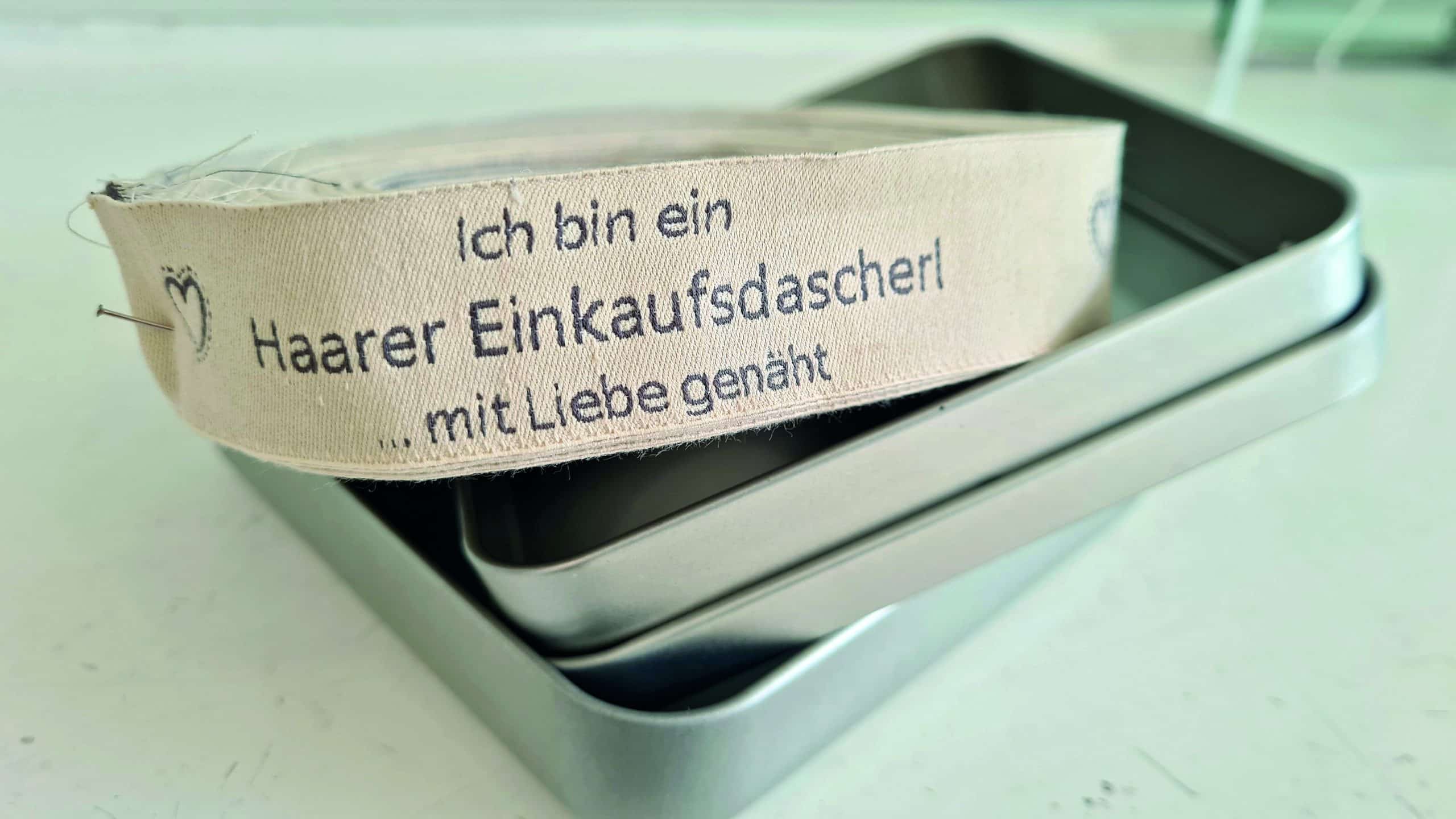 Dort sollten „Taschenbäume“ aufgestellt werden, von denen sich „spontane Einkäufer“, die zwar den Geldbeutel aber keine Tasche oder Korb dabeihaben, bedienen können. Der Plan: Vom „Taschenbaum“ kann man sich nicht nur einen Stoffbeutel wegnehmen, sondern ihn dann auch (wenn nötig gewaschen) wieder hinhängen. Ein durch und durch nachhaltiges System – praktisch und zudem noch schön anzusehen. Die Gemeinde hat kleine Labels drucken lassen, die die Tasche auch eindeutig als „Haarer Einkaufsdascherl“ identifiziert.