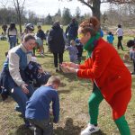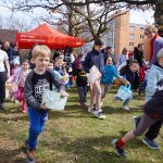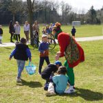 Mitten im Getümmel stakst eine „Henne“ (Stadträtin Astrid Herrmann, SPD) und legt zur großen Begeisterung der Kleinsten hier und dort ein Ei. Bald ist sie umringt von juchzenden Kindern, die sie bestürmen doch noch ein weiteres zu legen. Lachend folgt sie dem Wunsch der Kinder. Plumps, lässt sie das nächste fallen und kommentiert den Erfolg mit einem lauten „Gack, gack, gack, ga …“: „Ostern ist für mich ein Fest, dass mir richtig Freude macht“, meint Herrmann in einer wohlverdienten Legepause. Das Fest beginne für sie bereits mit dem Gründonnerstag: „Ein gemeinsame Mahl zu halten, Erinnerungen austauschen und genau zu schauen, was uns stärkt, um unser Leben zu meistern und dann Ostersonntag ganz früh aufzustehen, um zum Osterfeuer zu gehen, wenn alles noch dunkel ist.“