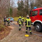 Der Prüfungstag begann mit einem theoretischen Teil, in dem die Feuerwehrfrauen und -männer 15 Fragen beantworten mussten. Anschließend folgte die praktische Prüfung, die realitätsnahe Einsatzsituationen einer taktischen Gruppe abbildete. Dazu gehörten die Rettung einer eingeklemmten Person nach einem Verkehrsunfall, die Befreiung einer unter einem Betonteil eingeklemmten Person mithilfe von pneumatischen Hebekissen, ein Löschaufbau mit taktischer Ventilation sowie ein weiterer Löschaufbau mit Personenrettung über die Steckleiter. Jede Teilnehmerin und jeder Teilnehmer mussten eine Station vollständig abarbeiten. Die Prüfungsverantwortung lag bei Johannes Bußjäger, Kreisbrandmeister für die MTA, der gemeinsam mit weiteren Prüfern aus den beteiligten Wehren den Ablauf nach einem Katalog bewertete.