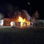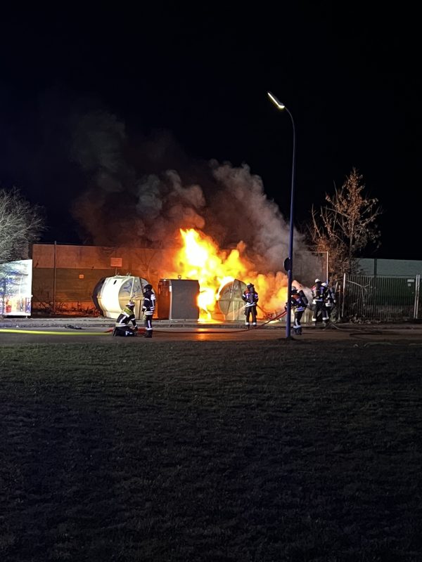 In der Nacht vom 20.11.25. wurde die Freiwillige Feuerwehr Haar um 0.07 Uhr mit dem Einsatzstichwort „B2 – Brand im Freien – Brand Container“ zur Brandbekämpfung gerufen. Bei Eintreffen der Einsatzkräfte bestätigte sich der Alarm: Vier Papiercontainer auf einer Wertstoffinsel, die sich in unmittelbarer Nähe zur S-Bahn-Strecke befindet, standen im Vollbrand. Fünf Atemschutzgeräteträger gingen zur Brandbekämpfung vor und leiteten die Löschmaßnahmen unter Verwendung von zwei C-Rohren ein. Im Anschluss an die Groblöschung wurde die Einsatzstelle mit einer Wärmebildkamera auf Glutnester kontrolliert. Für eine vollständige Löschung und um ein Wiederaufflammen zu verhindern, wurden die Glutbereiche zusätzlich mit einer Löschlanze behandelt und das Brandgut mit einem Gemisch aus Wasser und Netzmittel abgelöscht.